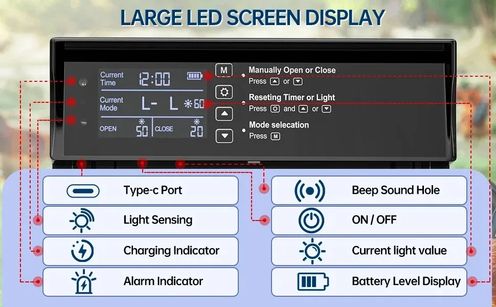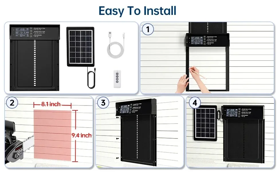 Solar Chicken Coop Door Automatic Chicken Coop Door Opener Battery Powered Auto Chicken Door 4 Modes with Timer & Light Sensor