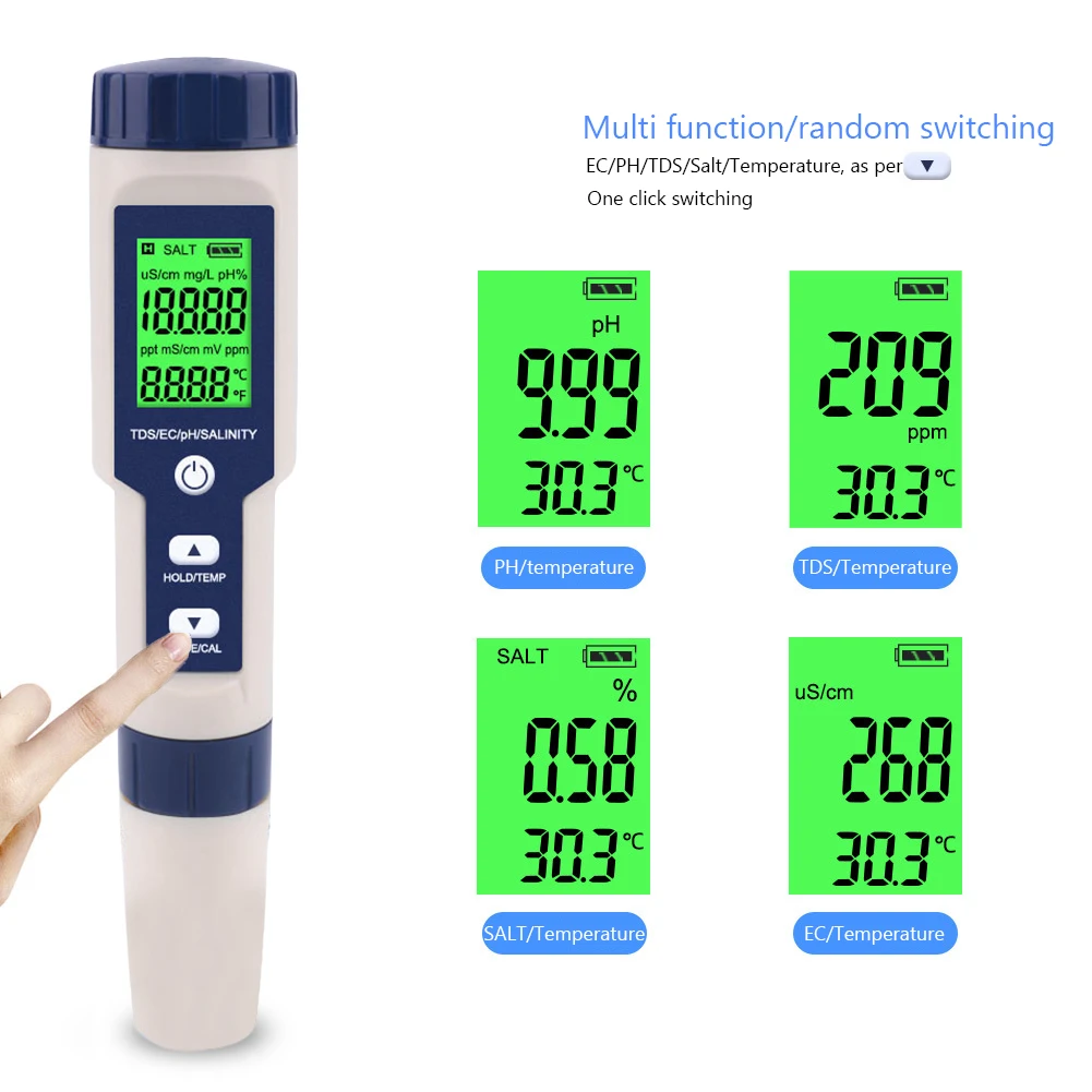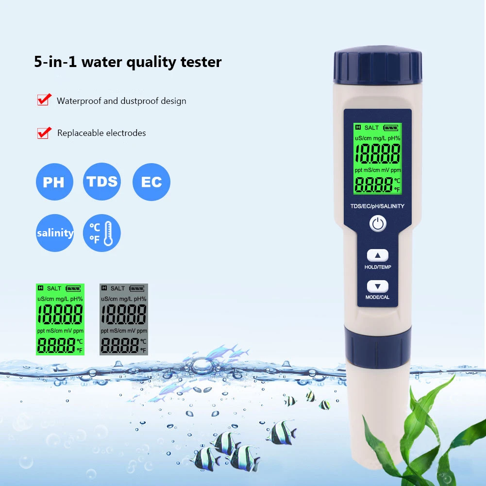 5 in 1 Water Quality Tester PH/EC/TDS/Salinity/Temp Tester for Drinking Water Aquariums Water Tester Pools Water Quality Monitor