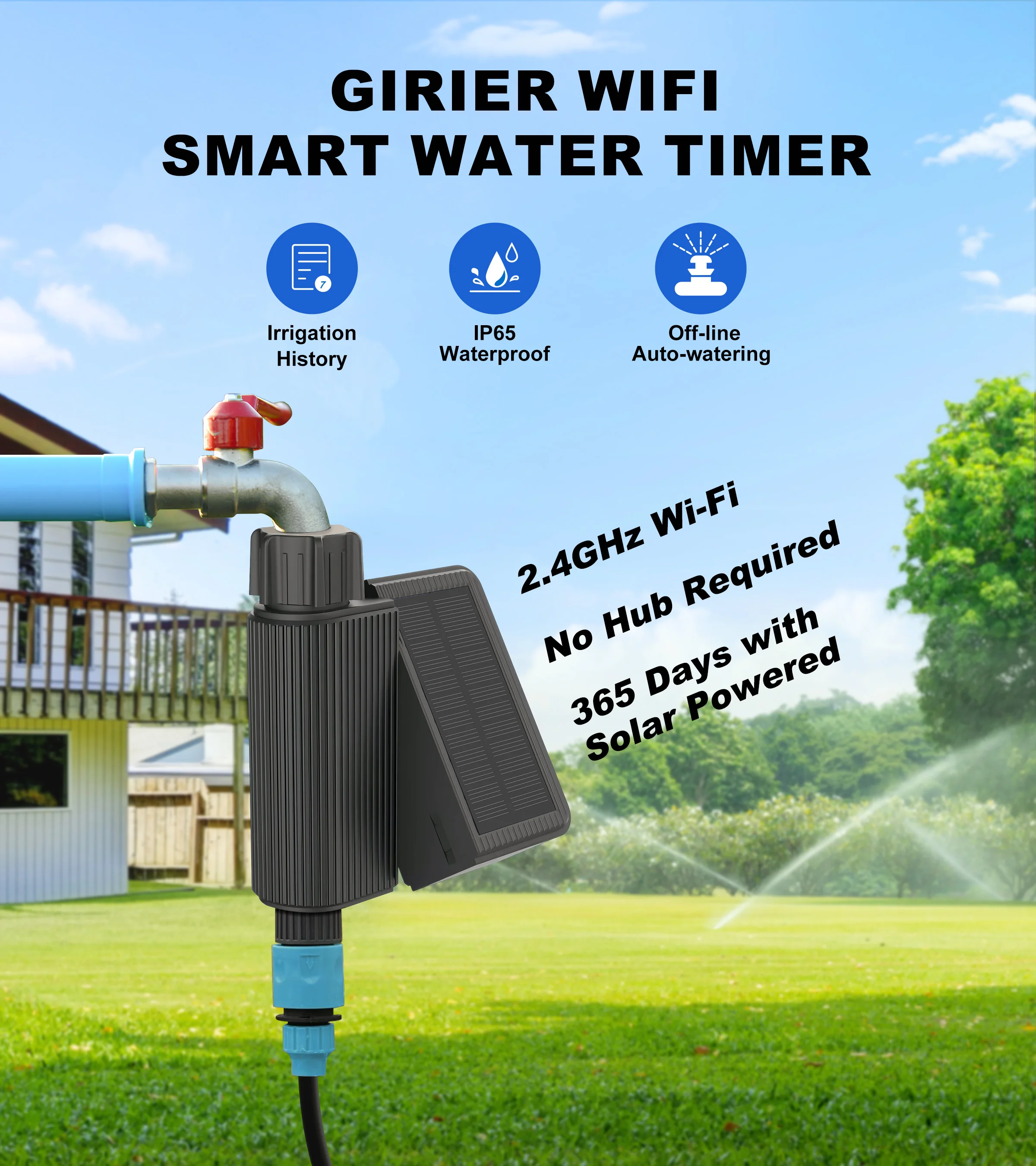 GIRIER Tuya Smart Water Timer Solar Powered Wifi Programmable Sprinkler Timer with Brass Inlet for Automatic Irrigation System