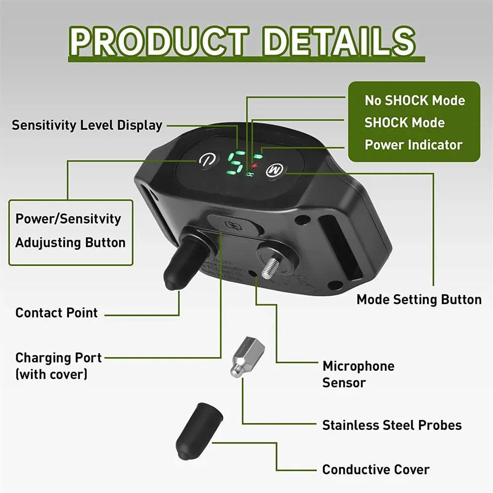 Smart Anti Bark Dog Collar 5 Sensitivity Levels Shock Vibration Modes Waterproof USB Rechargeable for Large Medium Small Dogs
