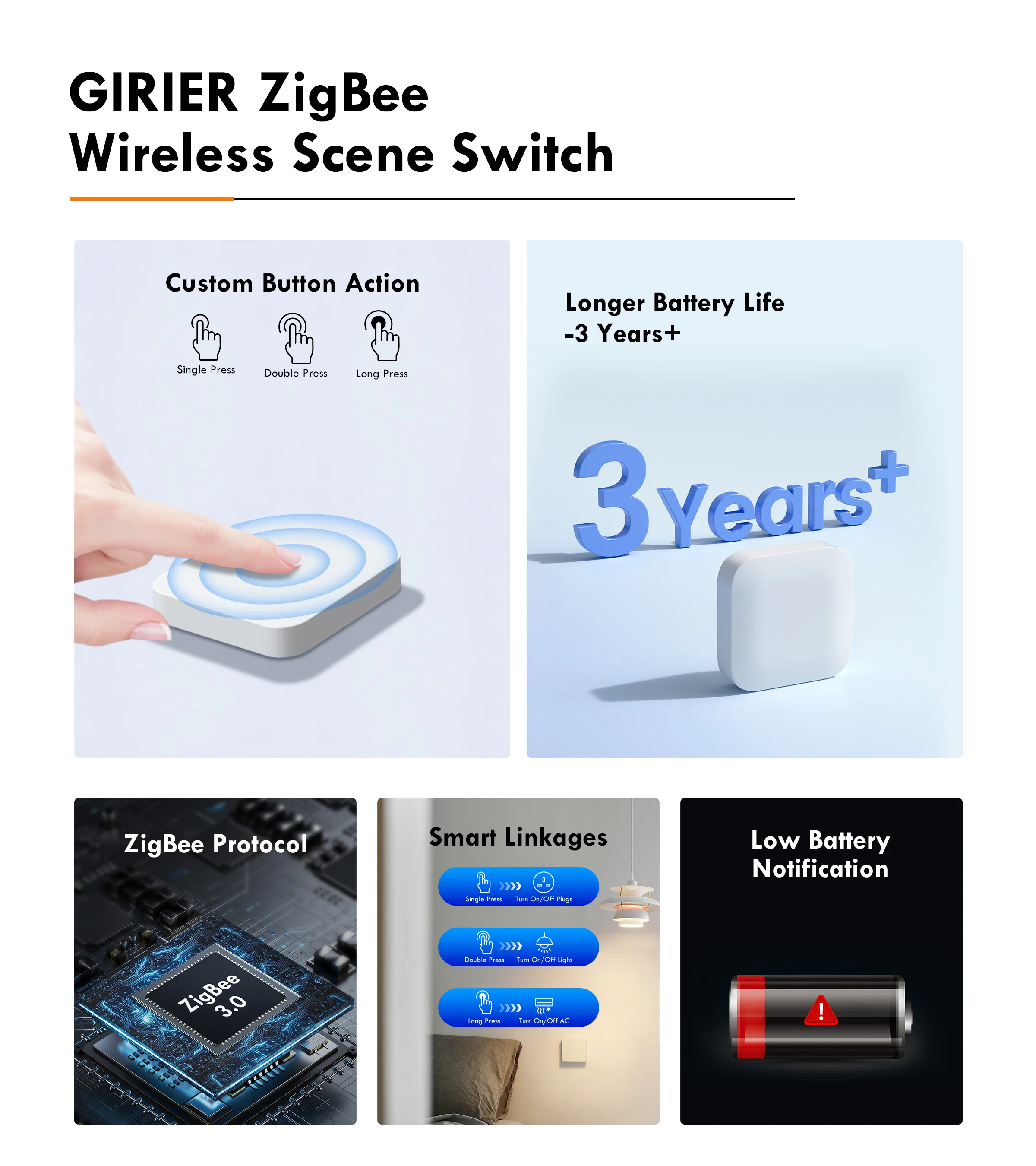 GIRIER ZigBee Scene Button Switch Smart Scenes Controller for Home Automation Multi-Scenario Linkage Switch Works Home Assistant