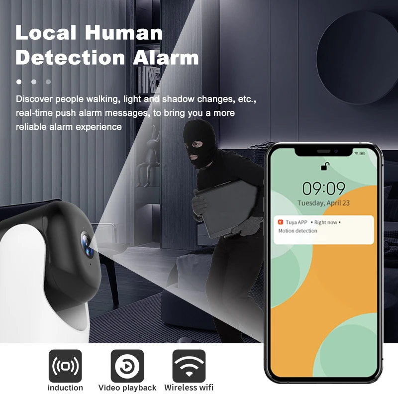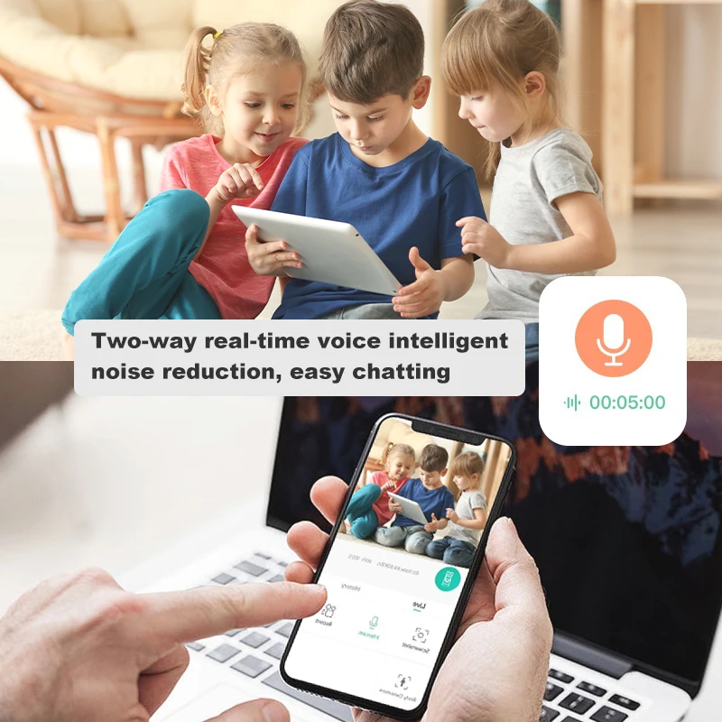 Smart HD Indoor Home Security Camera Ideal for monitoring infants, seniors, pets, or caregivers Features real-time app alert