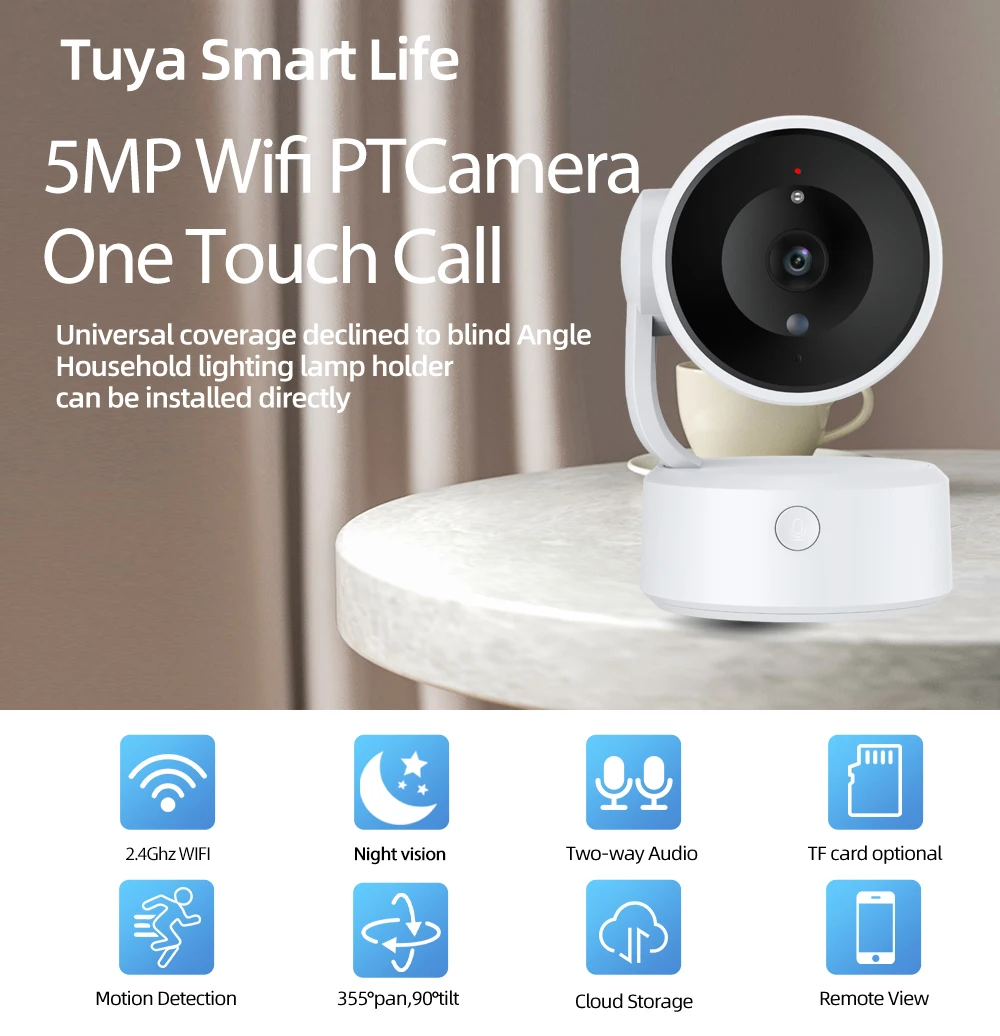 Smart Life 5MP Wifi PTZ Secuity Camera Indoor 2 Way Audio Wireless CCTV Surveillance IP Cam Tuya One Touch Call Baby Monitor Cam