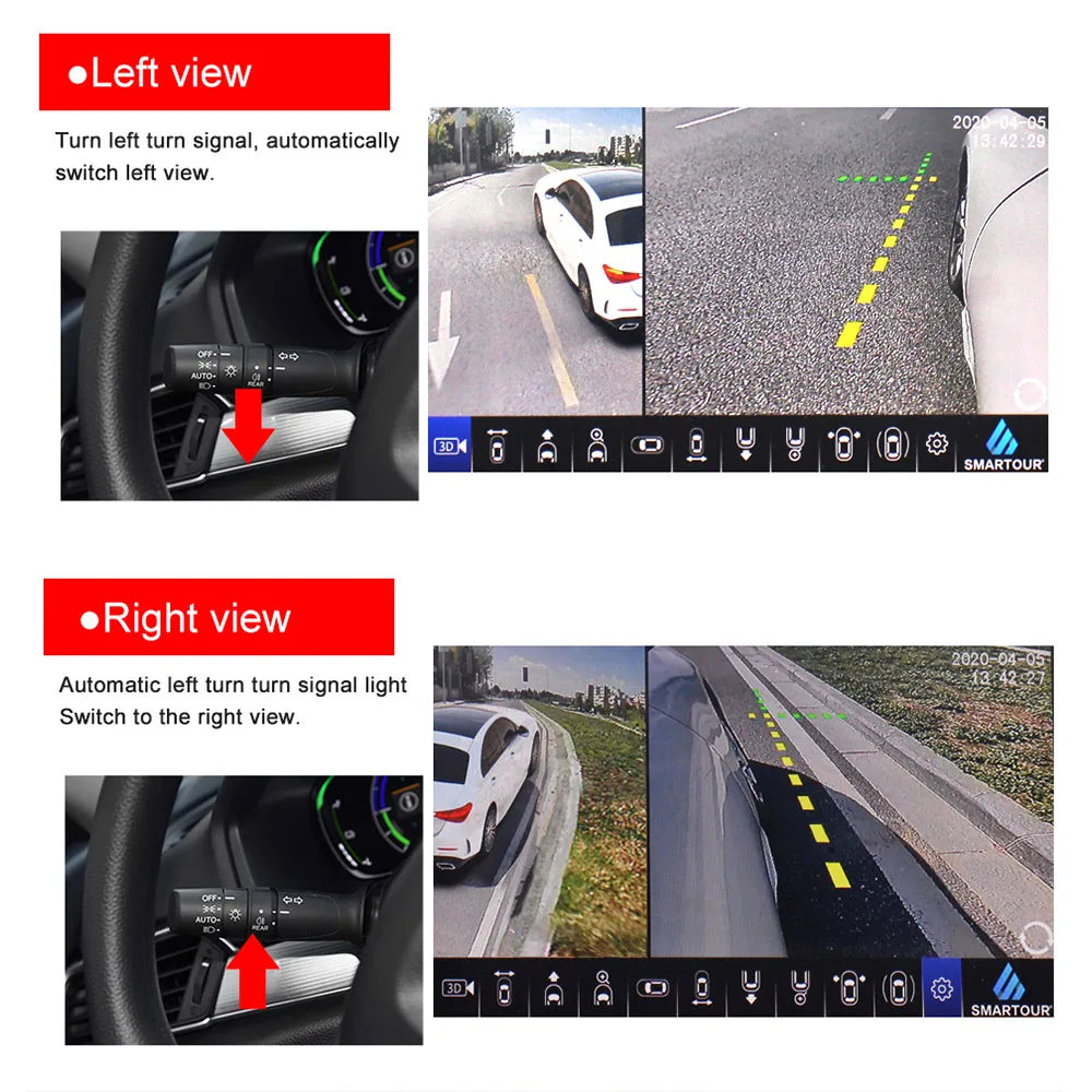 SMARTOUR HD 4K UHD 3.5D 360 Degree Bird View Panorama System Cameras Car Parking Surround View Video Recorder DVR Monitor UHD