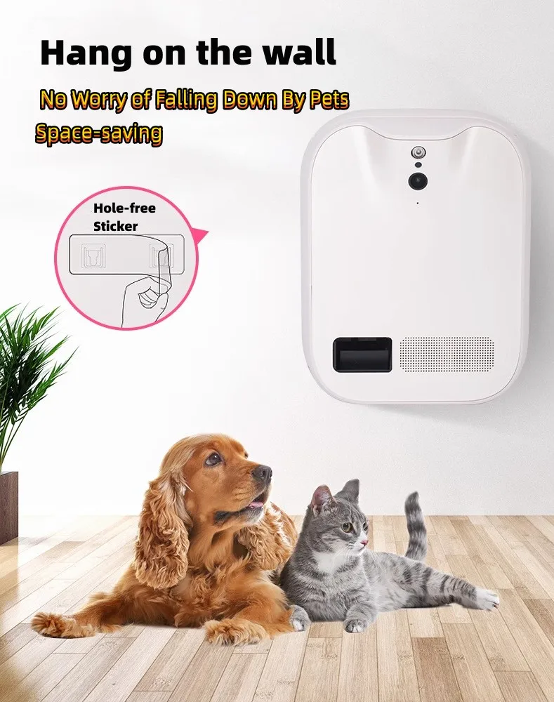 Wall hanging App Control Smart Pet Food Dispenser HD Camera with Treat Toss