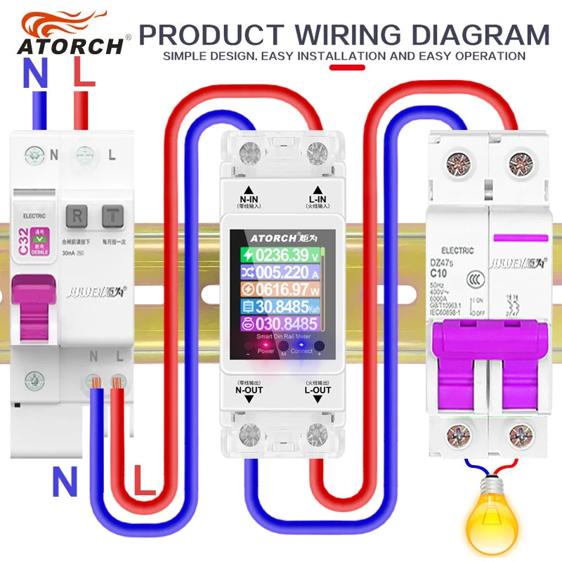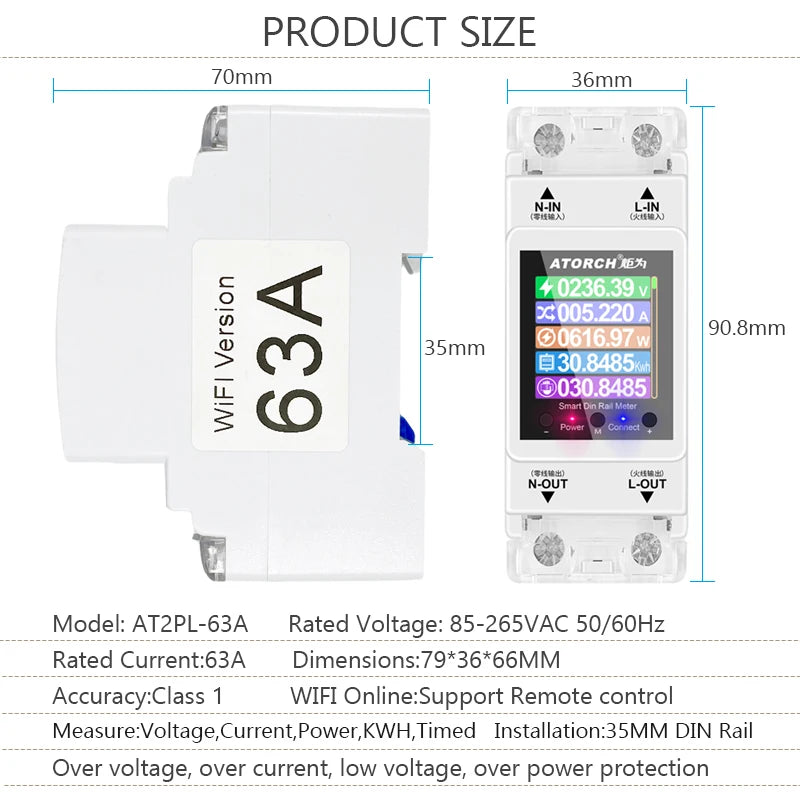 ATORCH 2P 63A Tuya WIFI Smart Switch Circuit Breaker Energy Meter KWh Power Metering Timer Relay Remote Control Smart Life APP