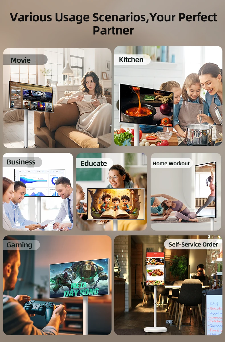 OFD 21.5 Inch Portable Monitor Android 13 Indoor Smart Interactive Display Screen Portable Tv With 9H Battery Moveable Smart Tv