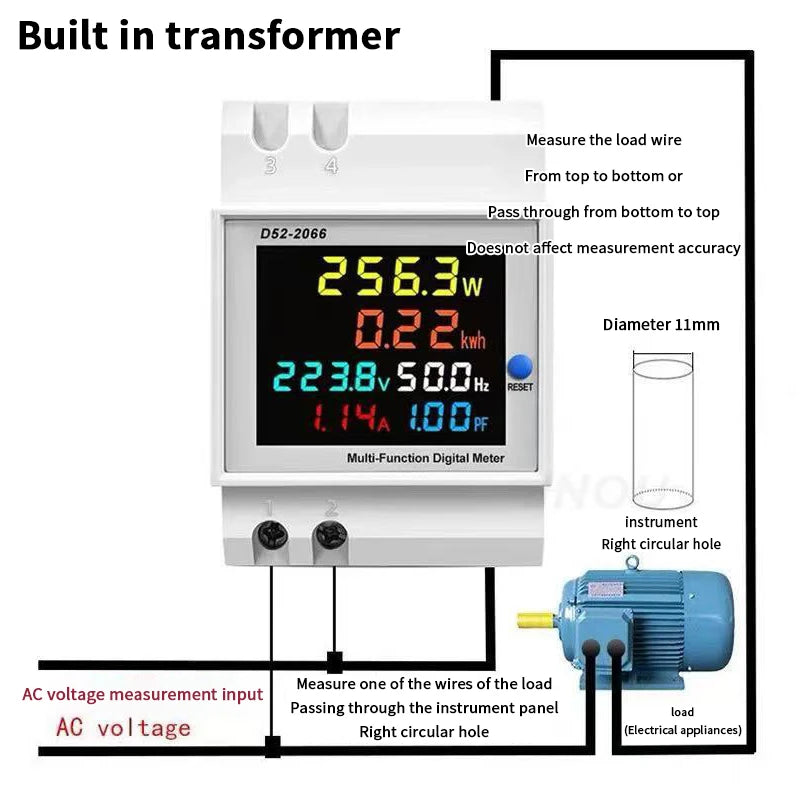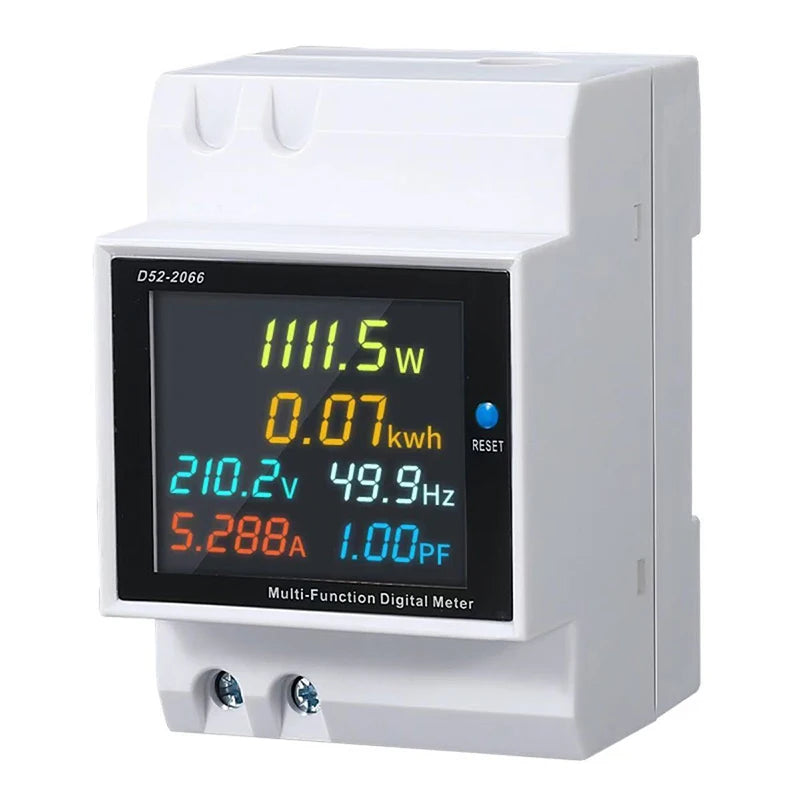 Smart Digital Energy Meter D52-2066, AC Multifunction Power Monitor with LCD Display for Household Electricity Usage