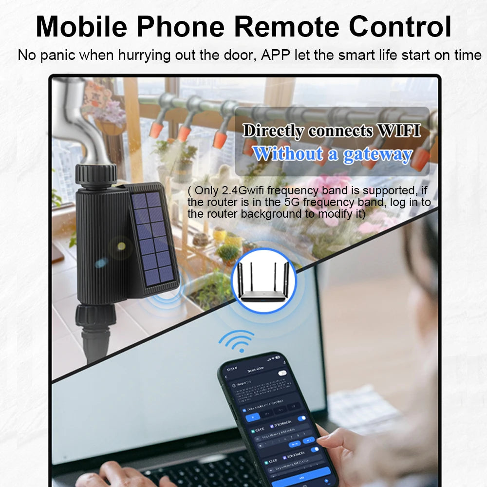 Smart Tuya Wifi Watering Timer Solar Energy Sprinkler Drip Irrigation System Built-in Water Flow Recorder Water Controller