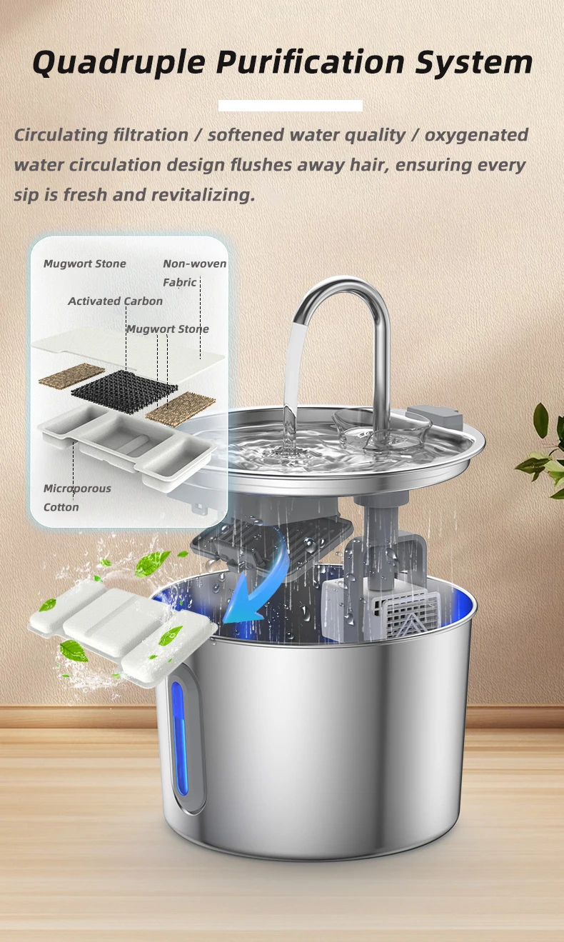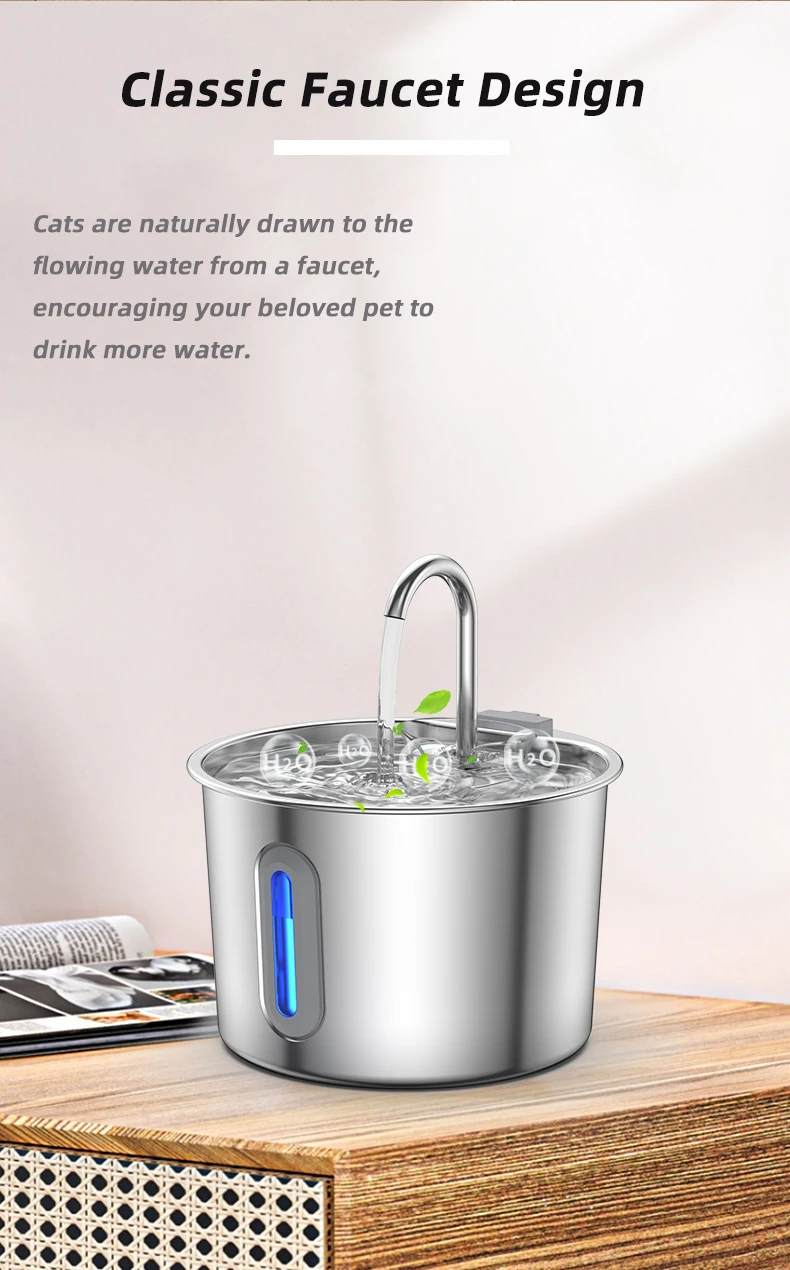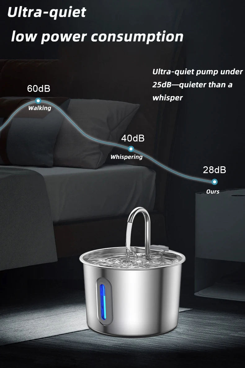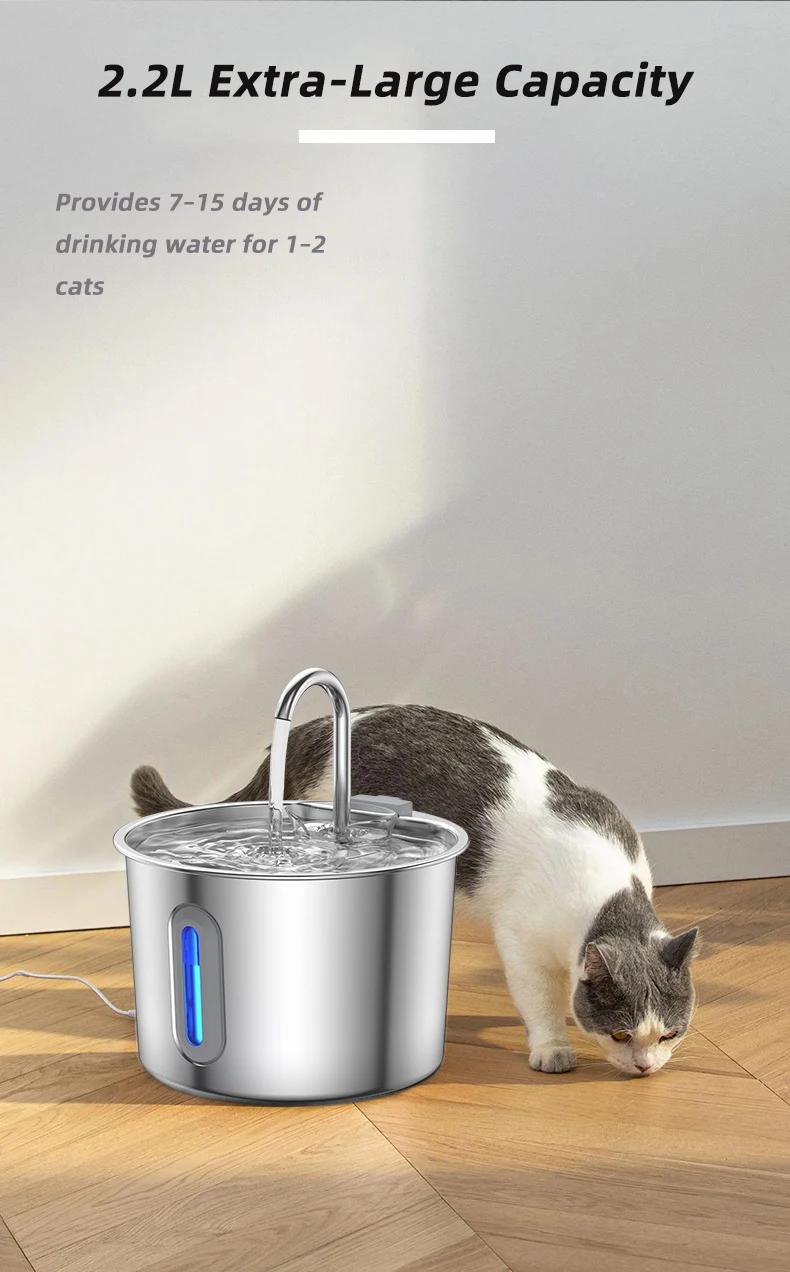 Automatic Pet Drinking Bowl for Cats 2.2L Stainless Steel Water Dispenser Dog Smart Watering Fountain Cat Drinker Accessories