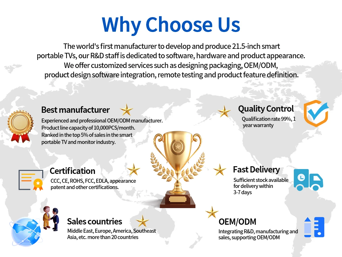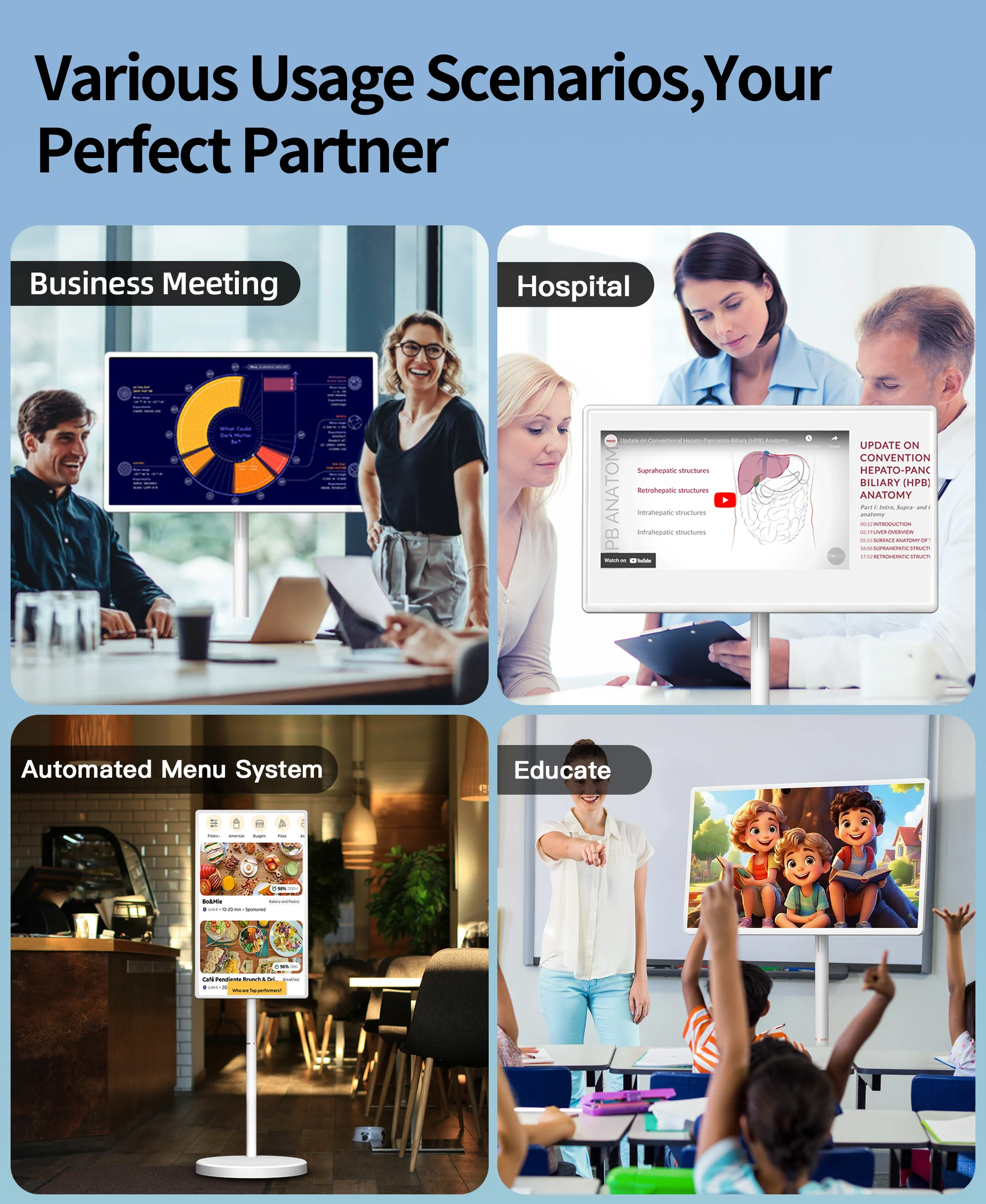 Interactive 32 Inch Portable Monitor Screen Smart TV Display Android 15 8+128GB Touchscreen LCD Monitors All in One Portable Tv
