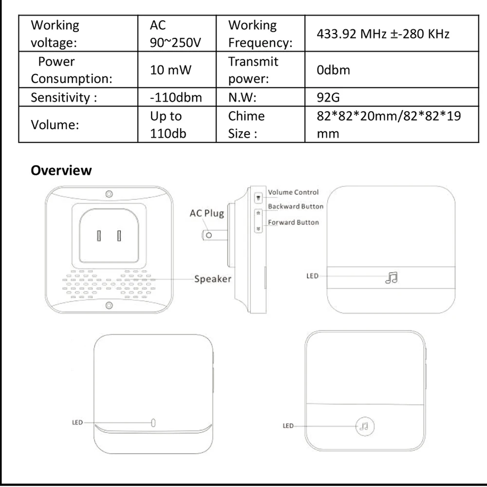 Universal 433MHz Wireless WIFI Smart Video Doorbell Chime Indoor Music Receiver 52 Melodies 4 Levels Volume for Smart Doorbells