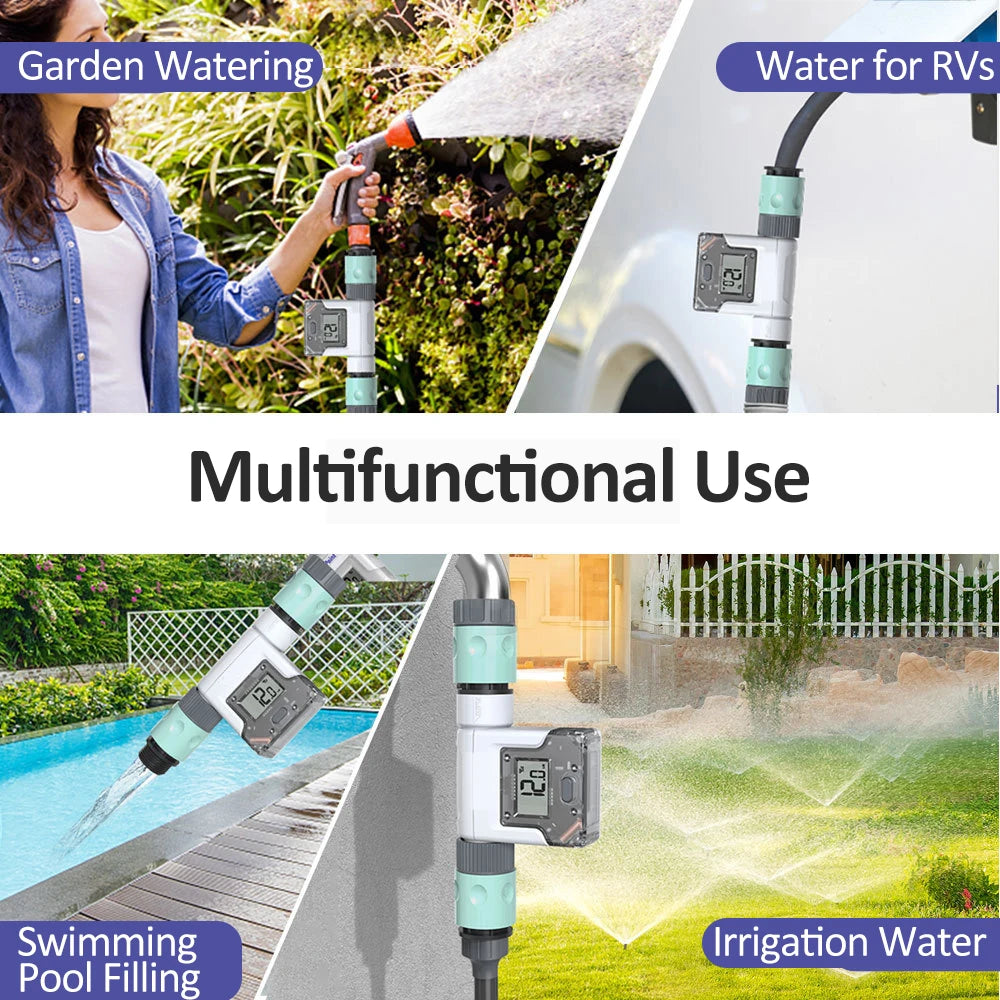 FLOW TRACKING: Stay on top of your watering schedule with our state-of-the-art garden hose water meter. Monitor water flow in real-time, empowering you to plan efficiently and conserve resources.