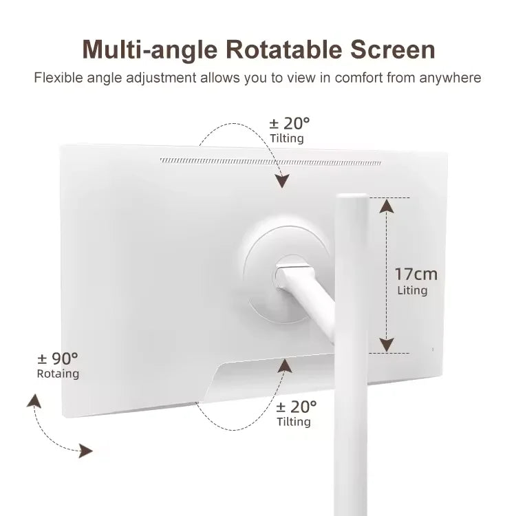 Flexibility is the name of the game thanks to a fully adjustable screen. The screen can be adjusted by moving it up and down, rotating left and right, and tilting at different angles to provide a better viewing experience.(Adjustable only M01 , Y01 ,G01 support)