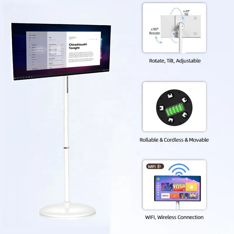 21.5/27/32 Android 13 Rachargable Interactive Portable Wireless Moveable Monitor LCD Screen Backlight White Smart Tv With Wheels