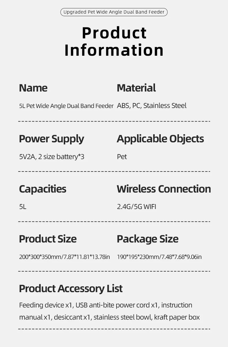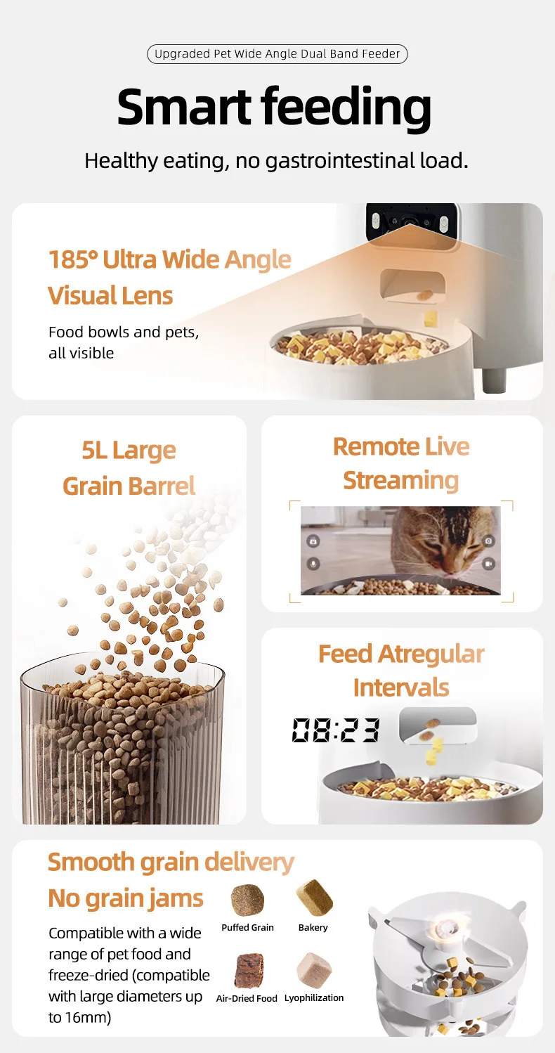 Automatic Cat Food Machine, 5G Wifi Connection, Pet Timed Intelligent Feeder with Preservation Function, Suitable for Cats/Dogs
