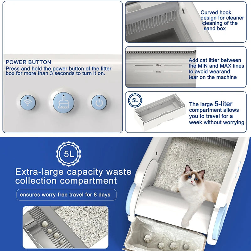 Automatic WiFi Control Cat Litter Box Self Cleaning Smart Large Cat Toilet Anti Splash Cats Sandbox Intelligent Pet Supplies