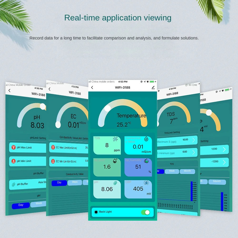 BLE-3178 Water Quality Detector PH/EC/TDS/CF/ORP/RH/Temperature Online Monitor Fish Tank Farming