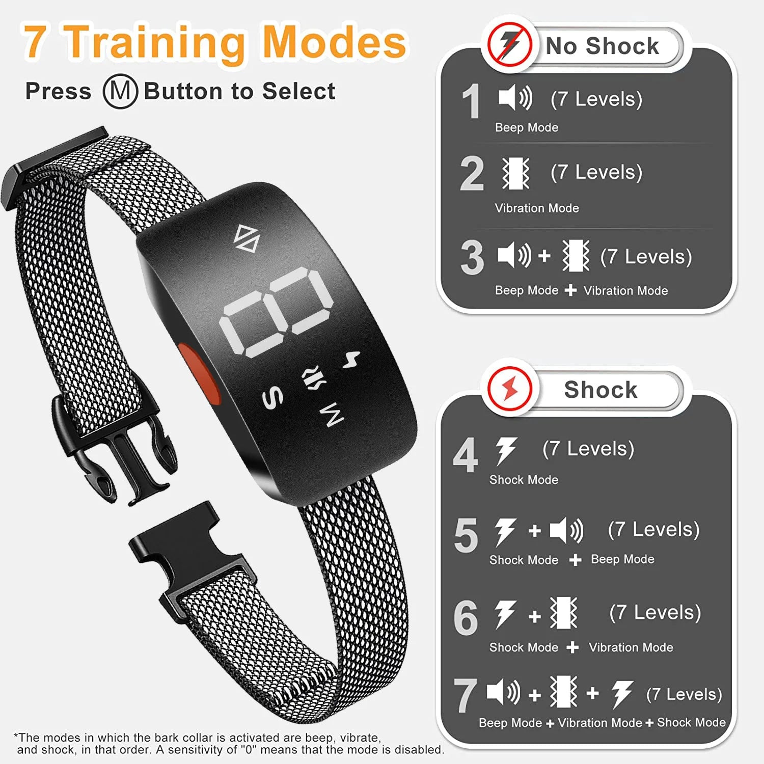 Dog Bark Collar for Large Medium Small Dogs Smart Bark Collar,Rechargeable Anti Barking Training Collar with 8 Adjustable Sensit