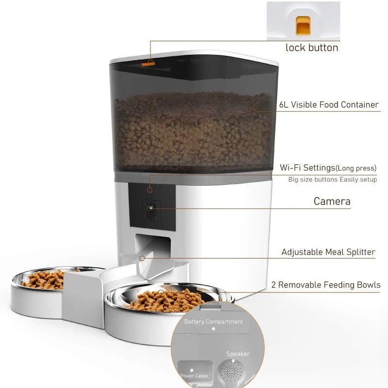 Dog Treat Dispenser Toy Camera Control Automatic Smart Feeder Home Emergency Alerts