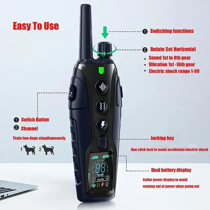 【Keypad Lock to Prevent False Triggering】This dog shockers has independent and clear function buttons, easy to use helping you to teach a dog basic obedience commands and solve an uncontrollable dog's behavior like being a bark collar for your dog,the keypad lock can significantly prevents any accidental push while carrying the remote control