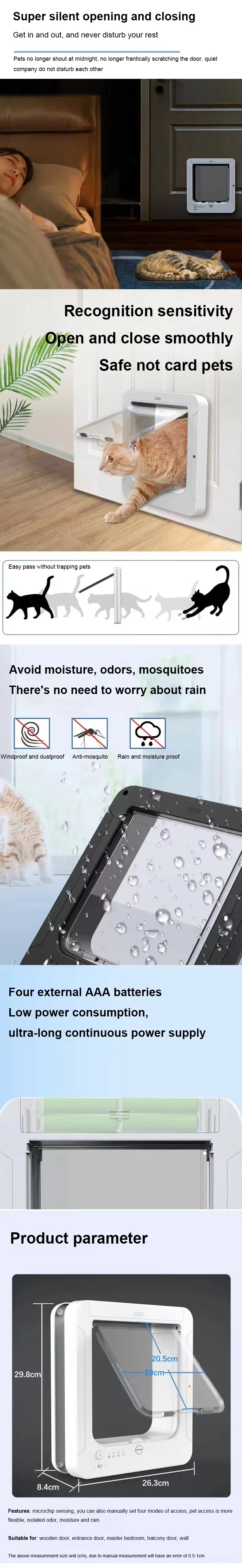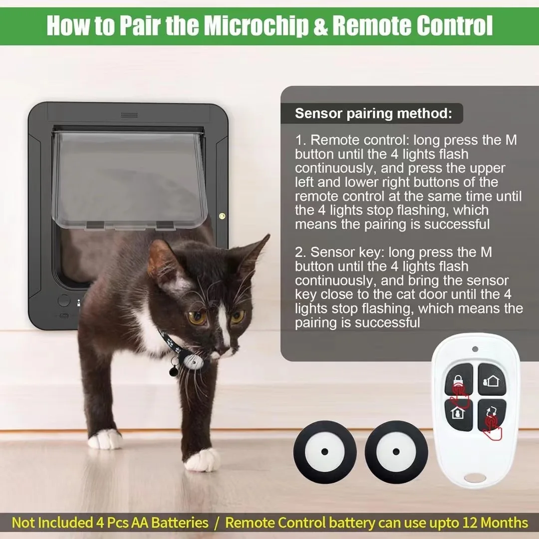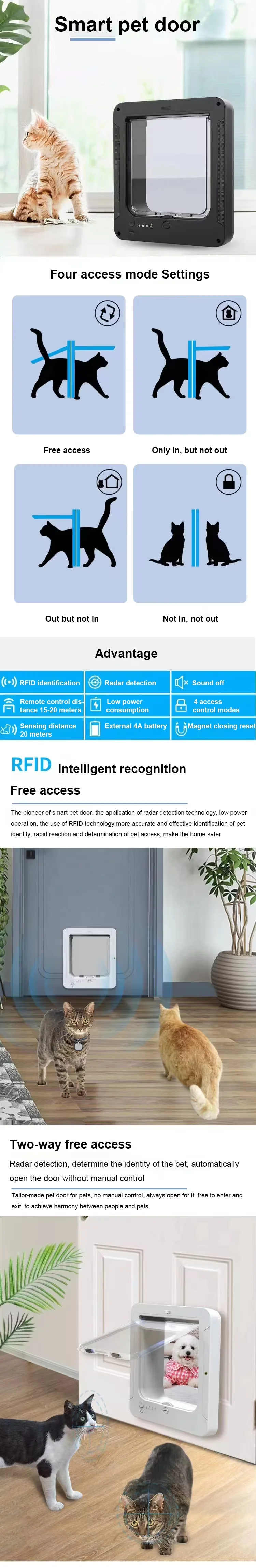 Electronic Dog Cat Door Automatic Smart Pet Safe Door Cat Flap with Microchip Sensor Key Controllable Access Direction Cat Gate