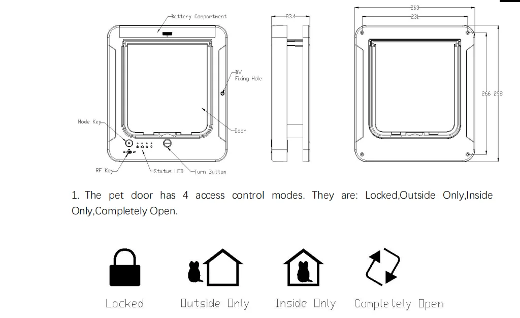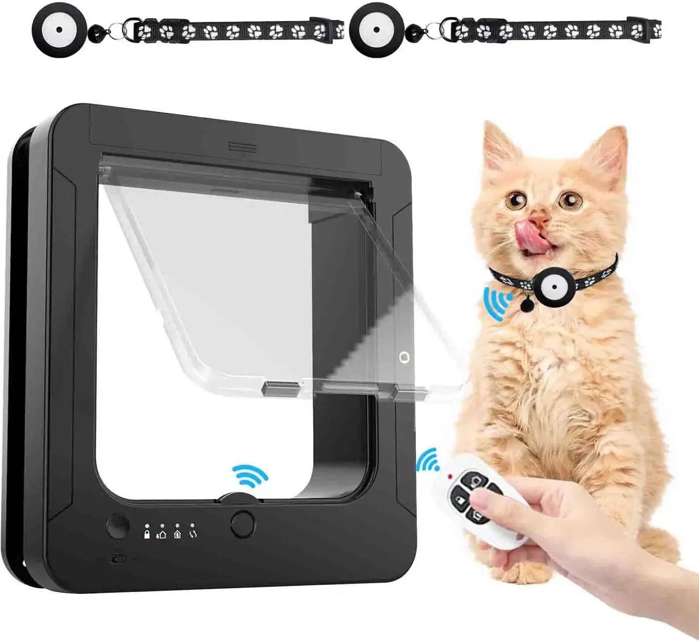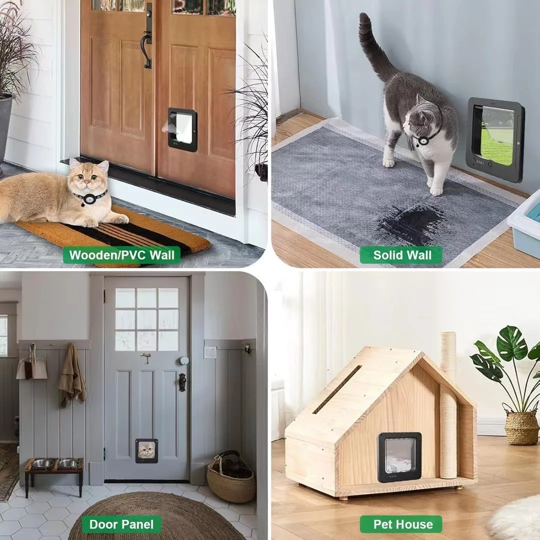 Electronic Dog Cat Door Automatic Smart Pet Safe Door Cat Flap with Microchip Sensor Key Controllable Access Direction Cat Gate