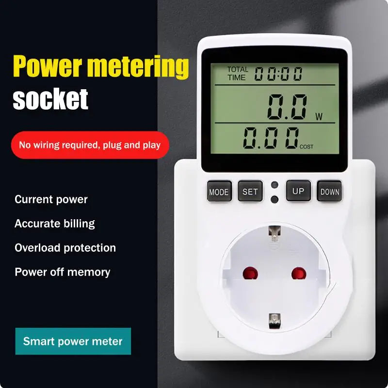 European And US Plug-in Power Metering Socket, Smart Metering Socket, Non-Backlit Voltage And Ampere Meter