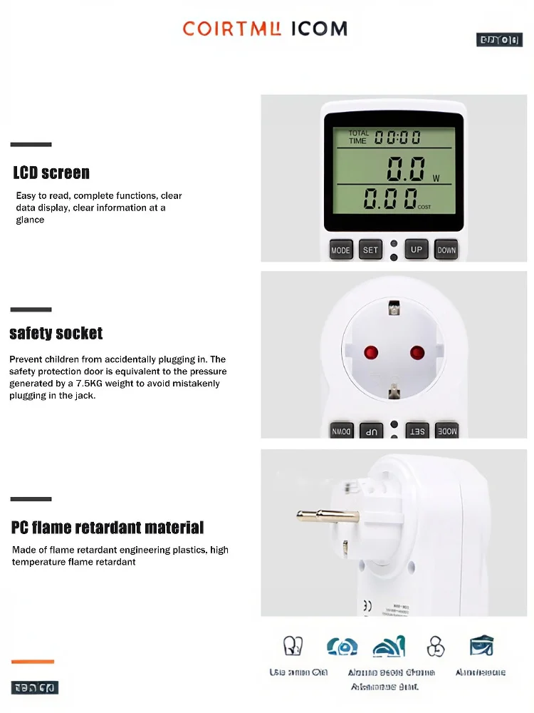 European And US Plug-in Power Metering Socket, Smart Metering Socket, Non-Backlit Voltage And Ampere Meter
