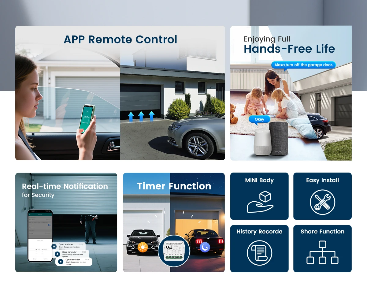 GIRIER Tuya WiFi Smart Garage Door Opener Controller for Home Automation DIY Breaker Relay Support APP Remote Control Work Alexa