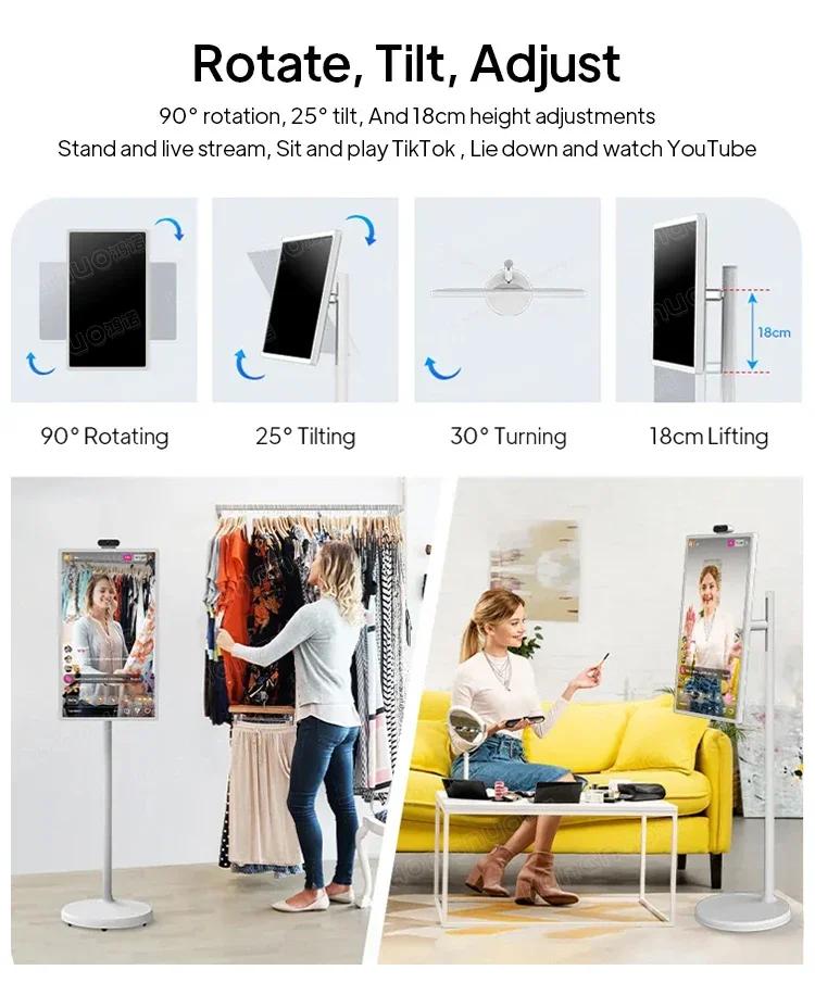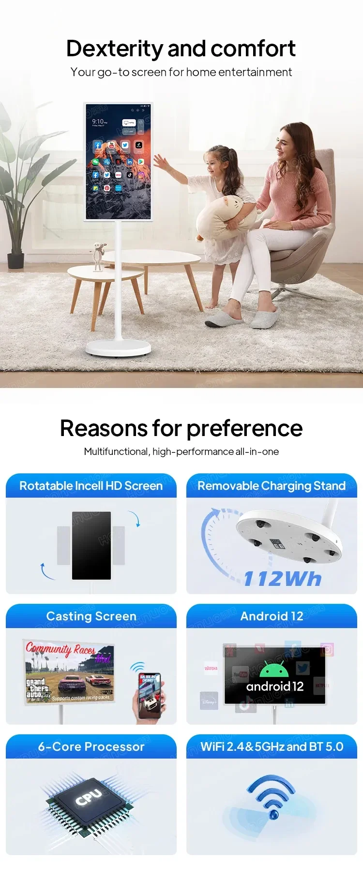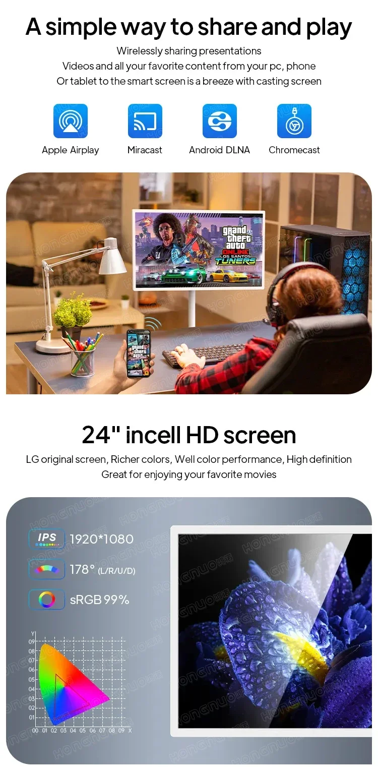 HONGNUO Smart Rotate Touch Screen 21.5 24 27 32 Inch Android All in One Digital Display IPS Movable Android 12 Smart TV