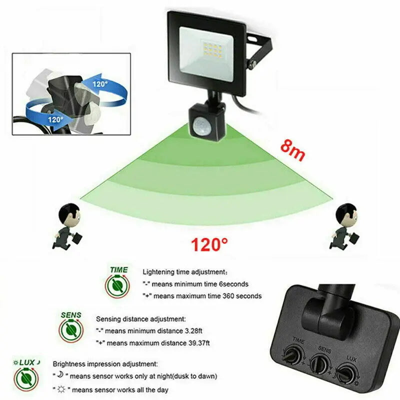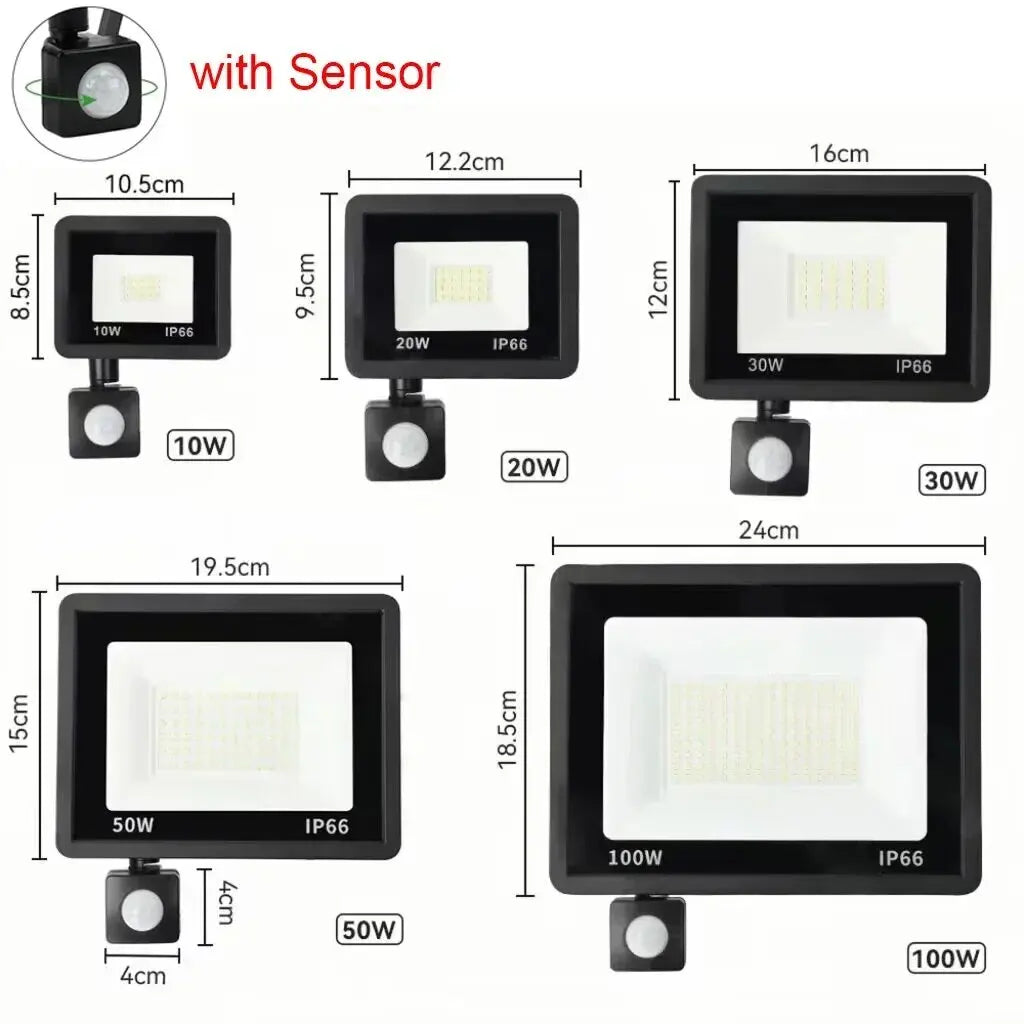 LED Floodlights With Motion Sensor Waterproof Outdoor Led Spotlight Garden Garage Street Wall Lamp 220V 100W 50W 30W 20W 10W