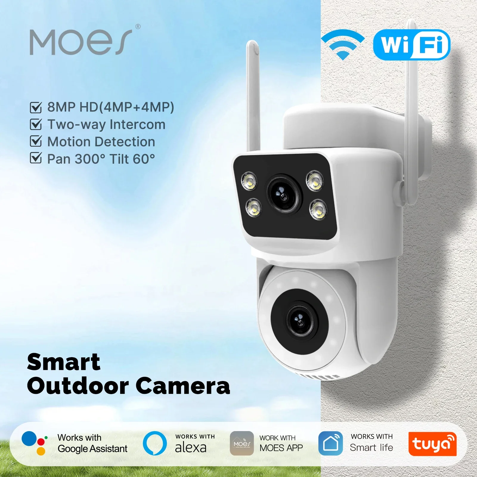 Moes Tuya Smart WiFi Outdoor Security Camera 8MP Dual Screen 2.4G/5G IP65 Waterproof Motion Detection Auto Track Two-Way Audio