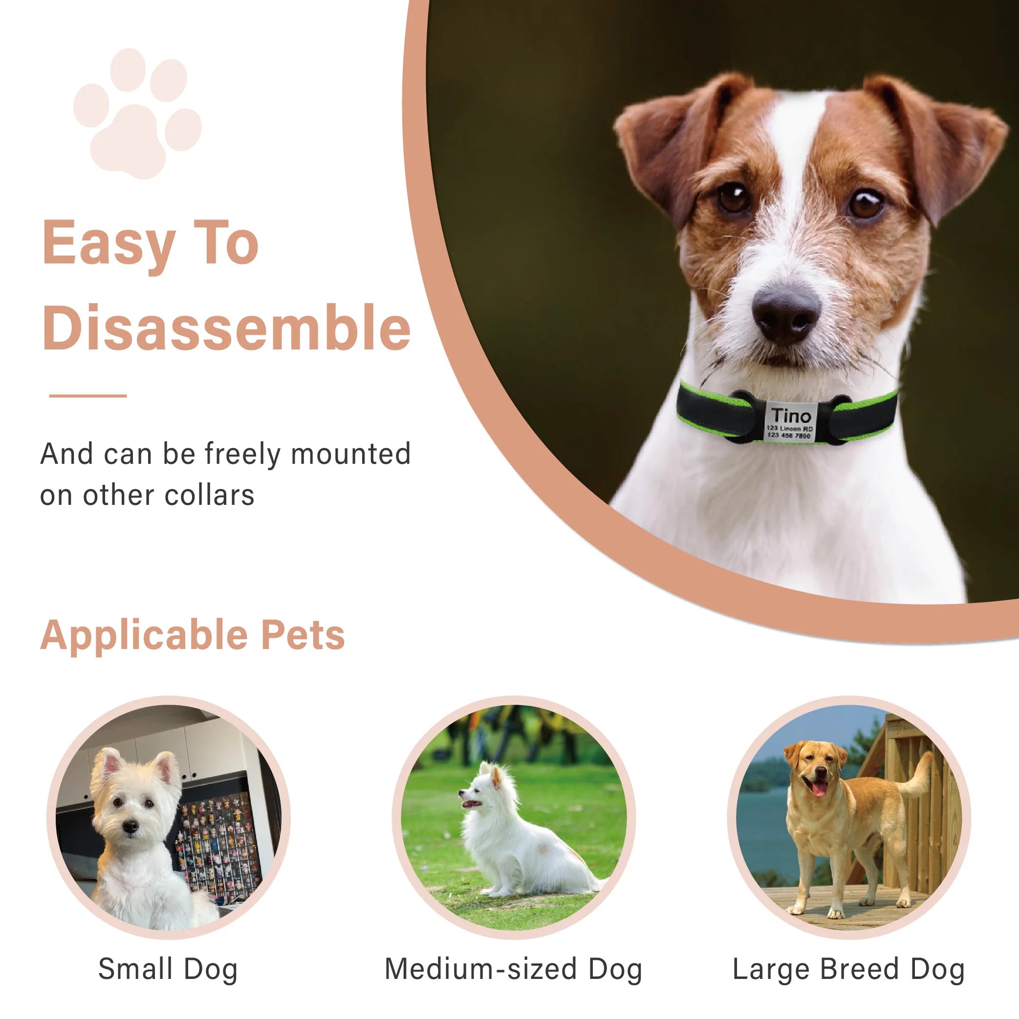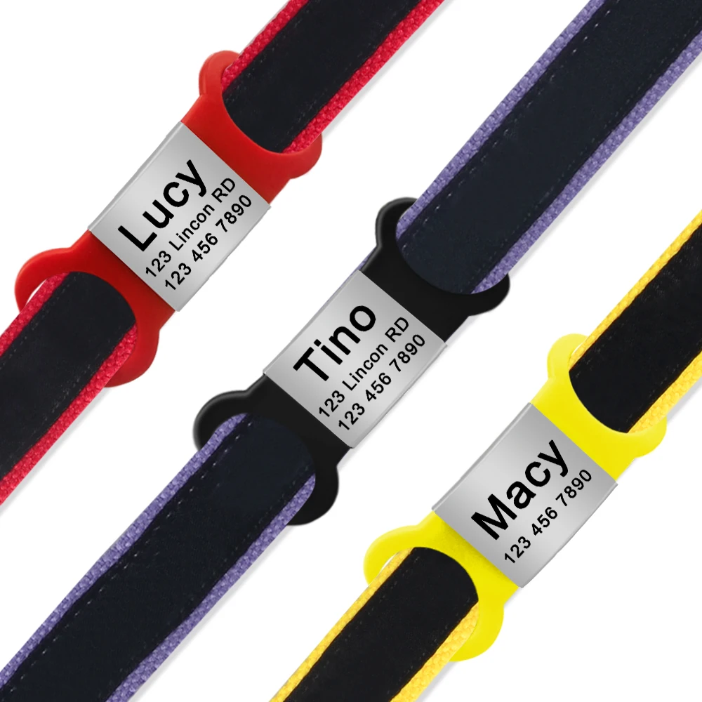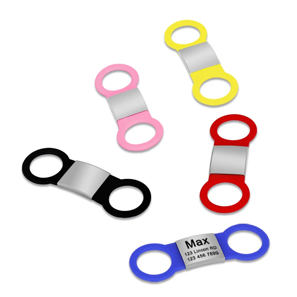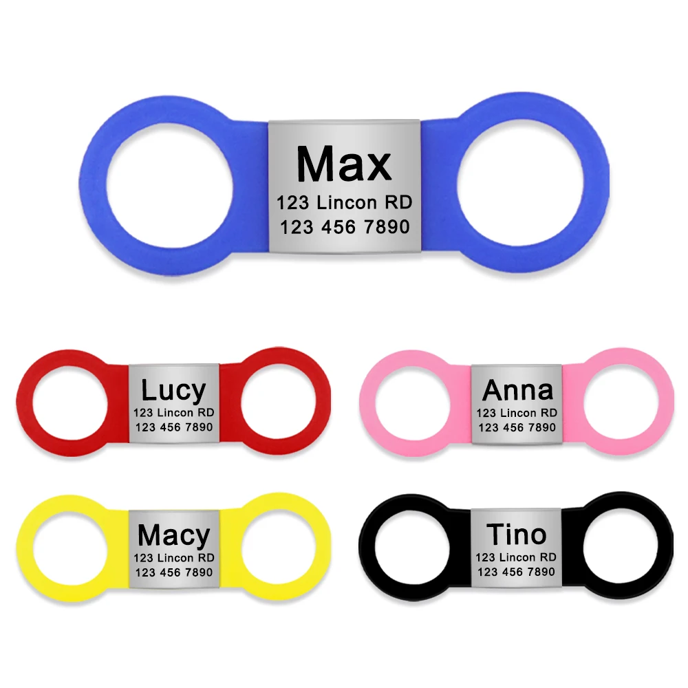 Nameplate Engraved Id Tag Dog Cat Collar Stainless Personalized Silicone Customize Anti-lost Accessory