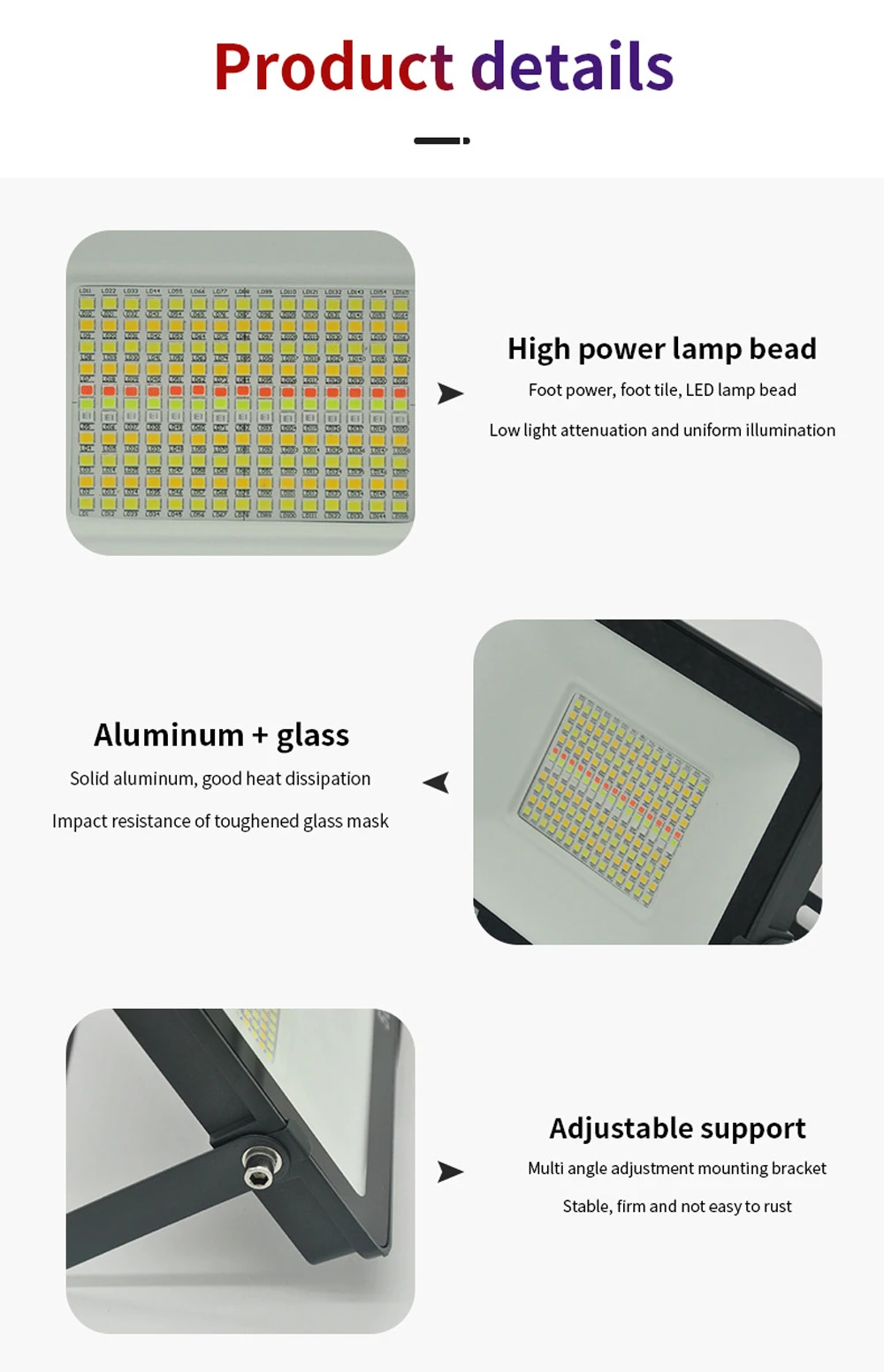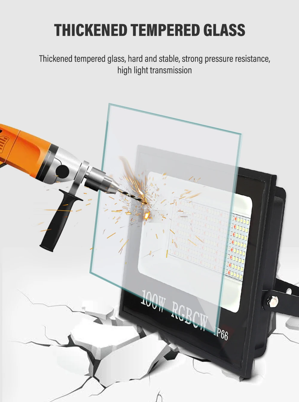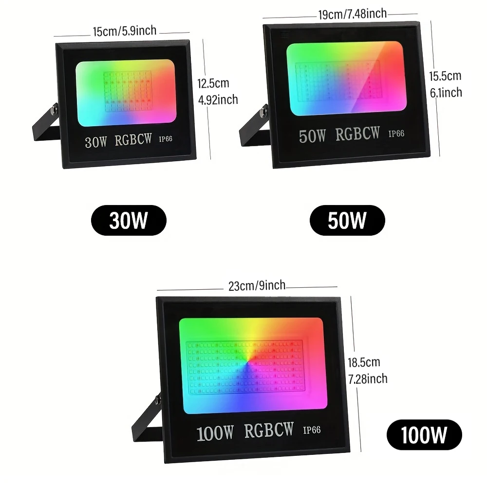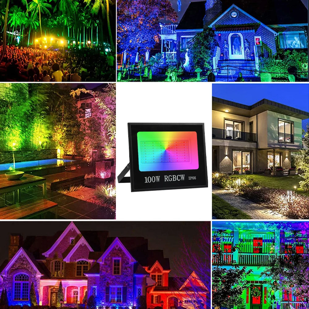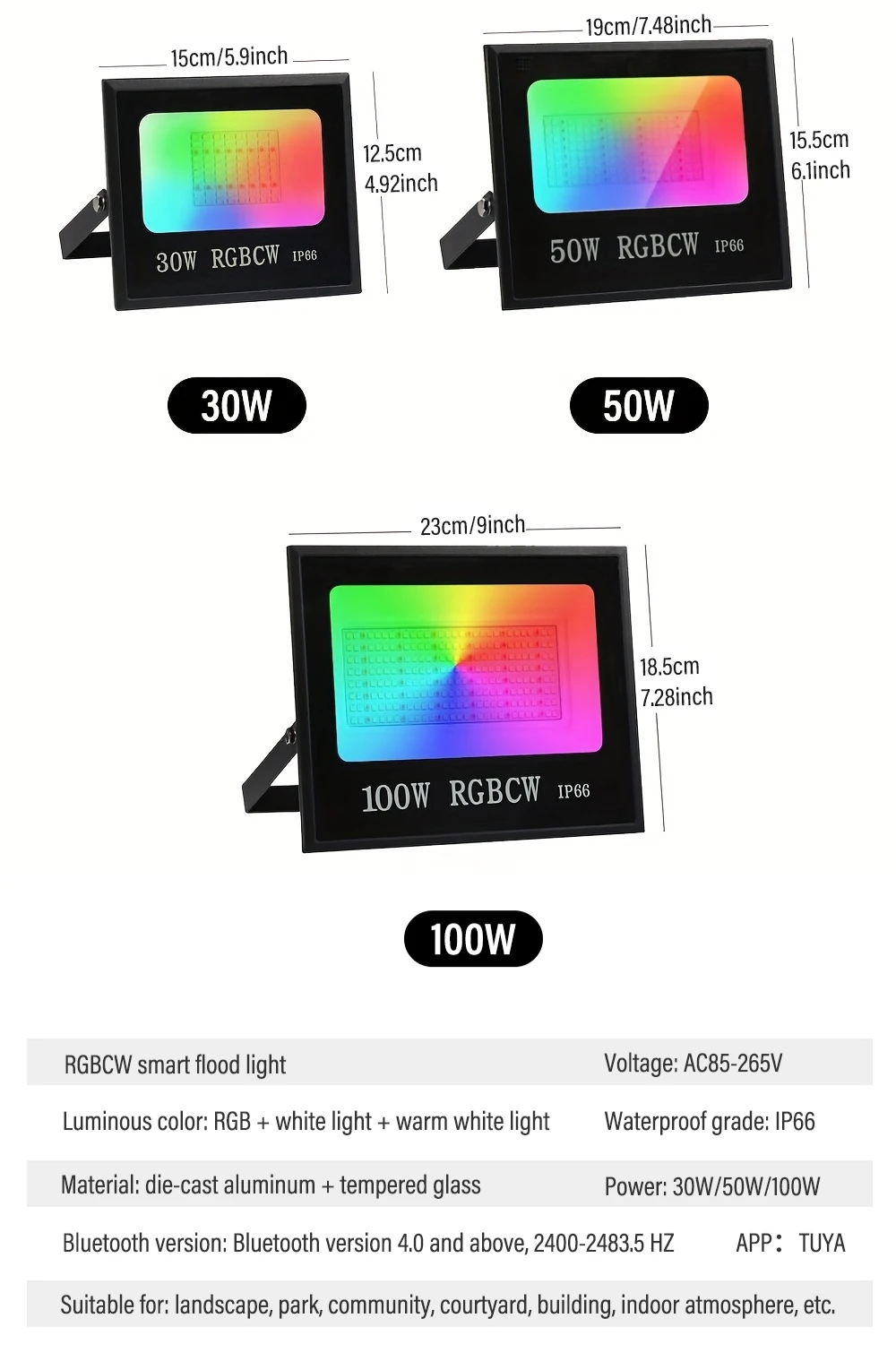 Outdoor RGBCW Smart Floodlight has 16 million colors Adjustable color temperature WIFI and wireless connectivity for patio