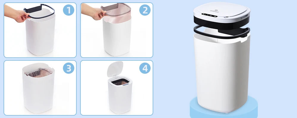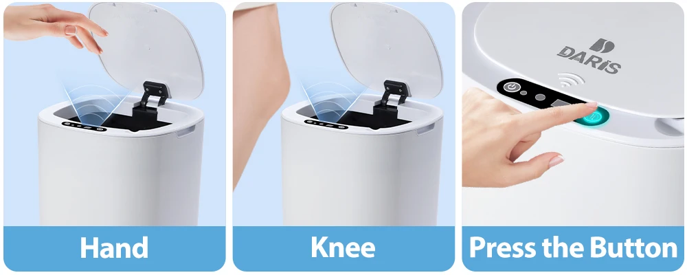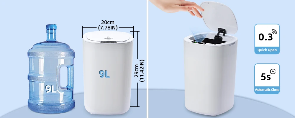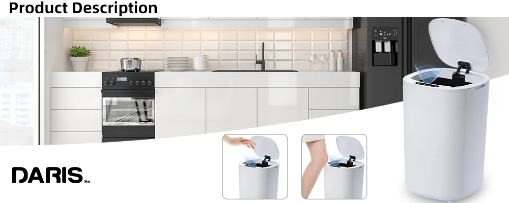 SDARISB Smart Sensor Trash Can Automatic Kicking White Garbage Bin for Kitchen Bathroom Waterproof 8.5-12L Electric Waste Bin