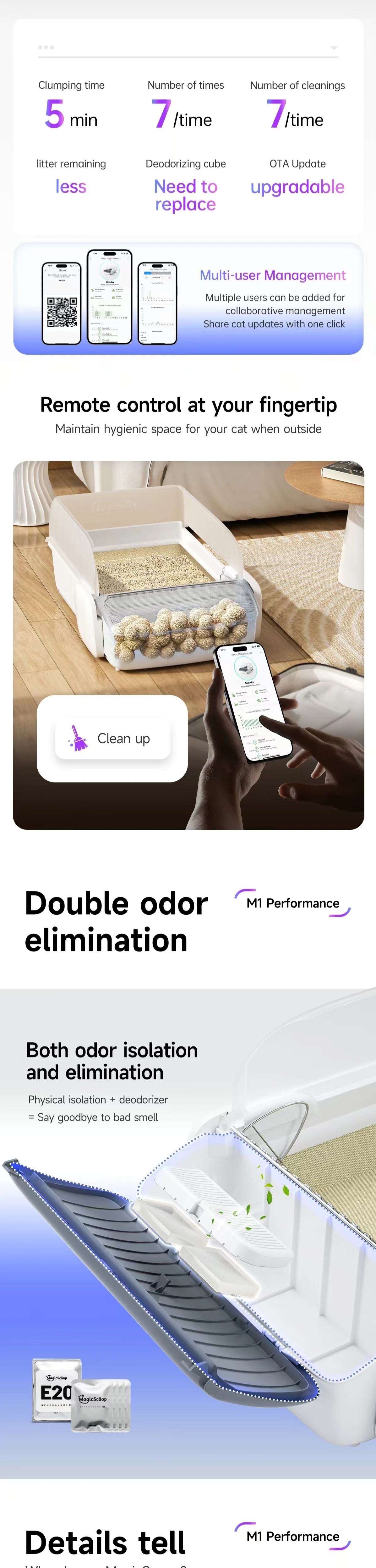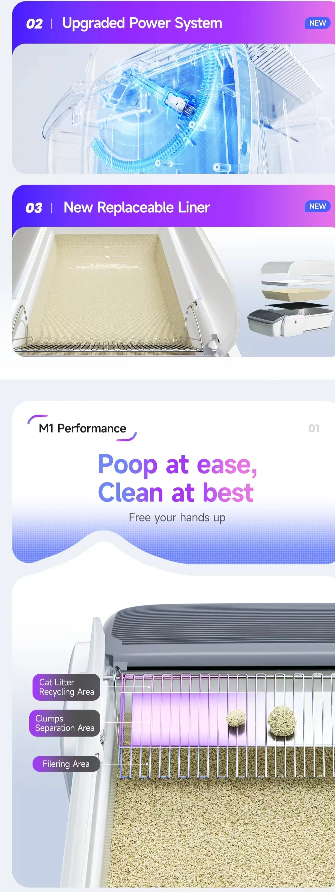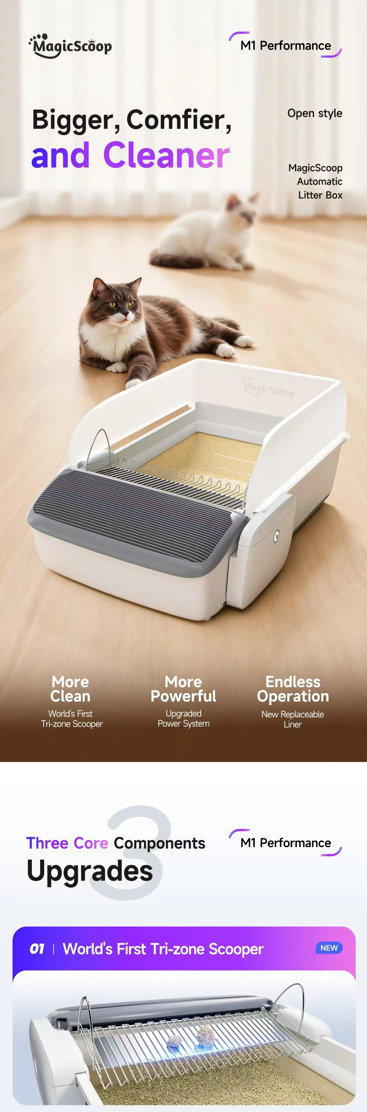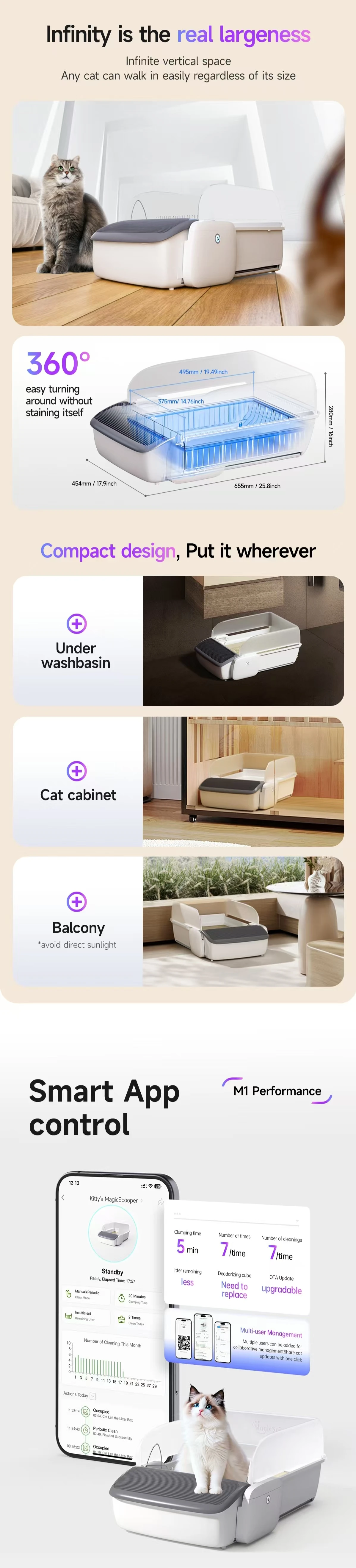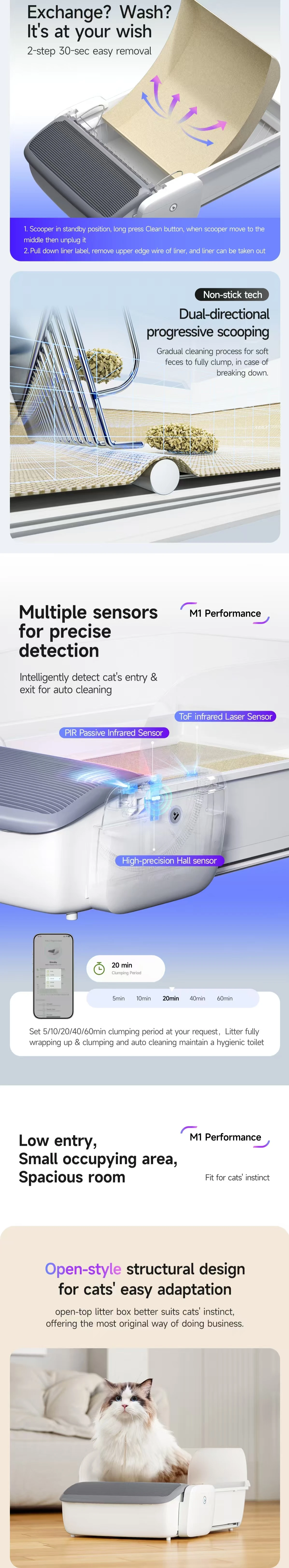 Self-Cleaning Cat Litter Box, 0.31'' New Slim Scooper, Automatic Smart Litter Box with App Control,Anti-Pinch,Odor-Free for Cats