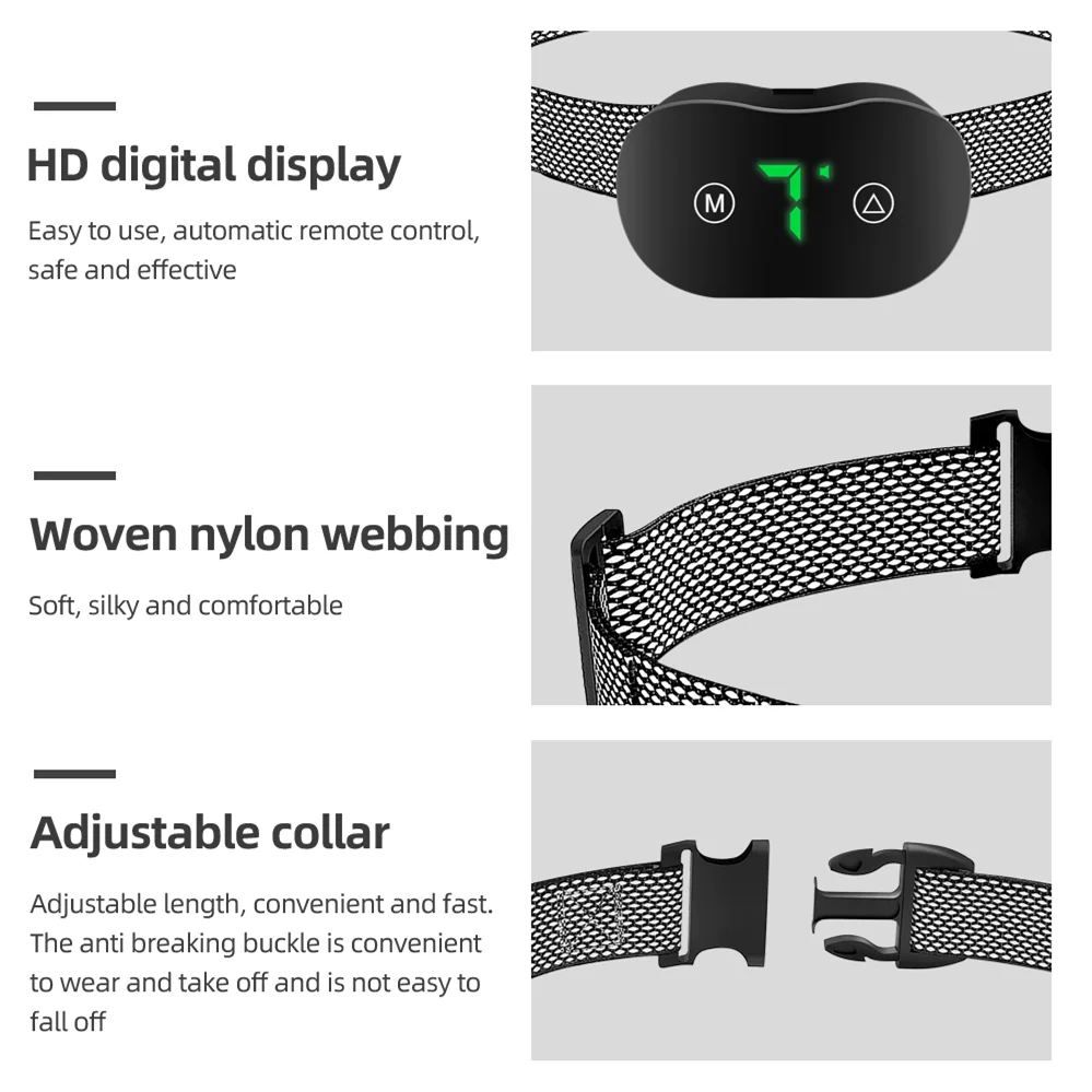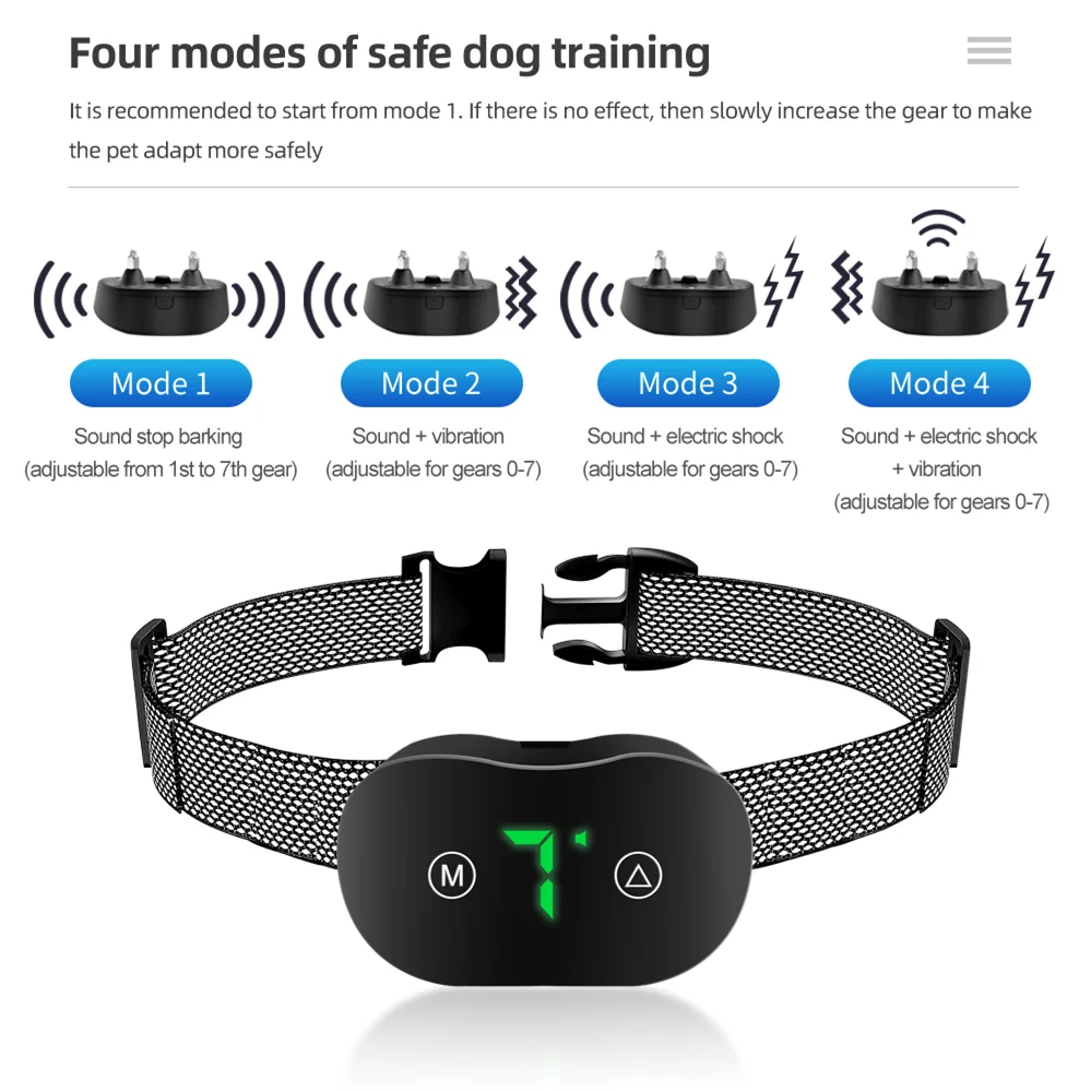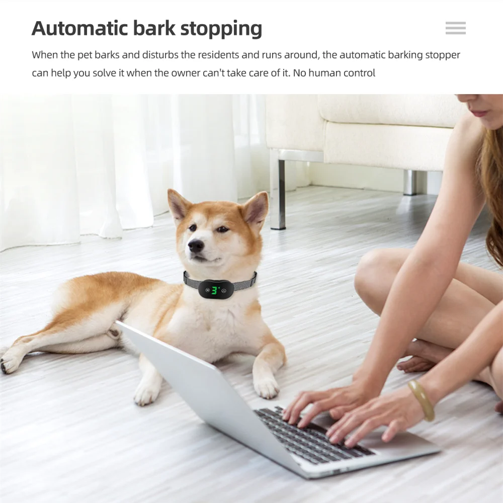 Smart Automatic Anti Barking Dog Collar Electronic Training Collar HD Digital Display IP67 Rechargeable Electric Bark Stopper