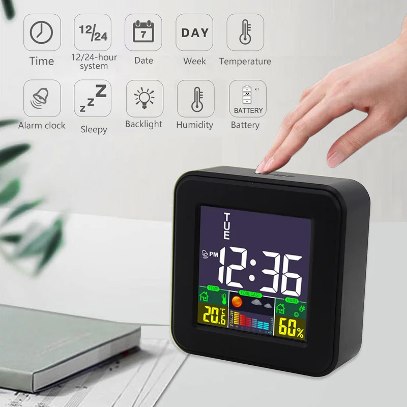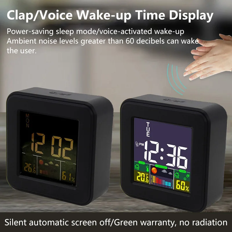 Smart Digital Alarm Clock LCD Display with Temperature Hygrometer Calendar Timer Intelligent Voice Controlled for Bedroom Office