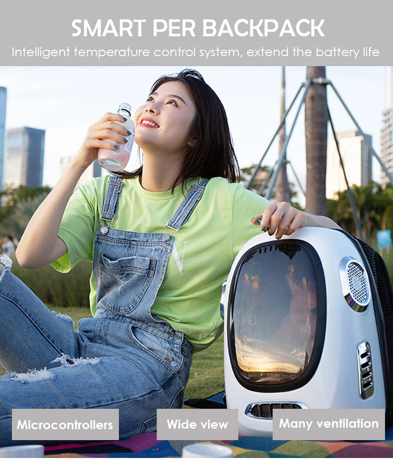 Smart Fans Temperature Controllable Windproof Solid Transparent Capsule Pet Backpack For Cats
