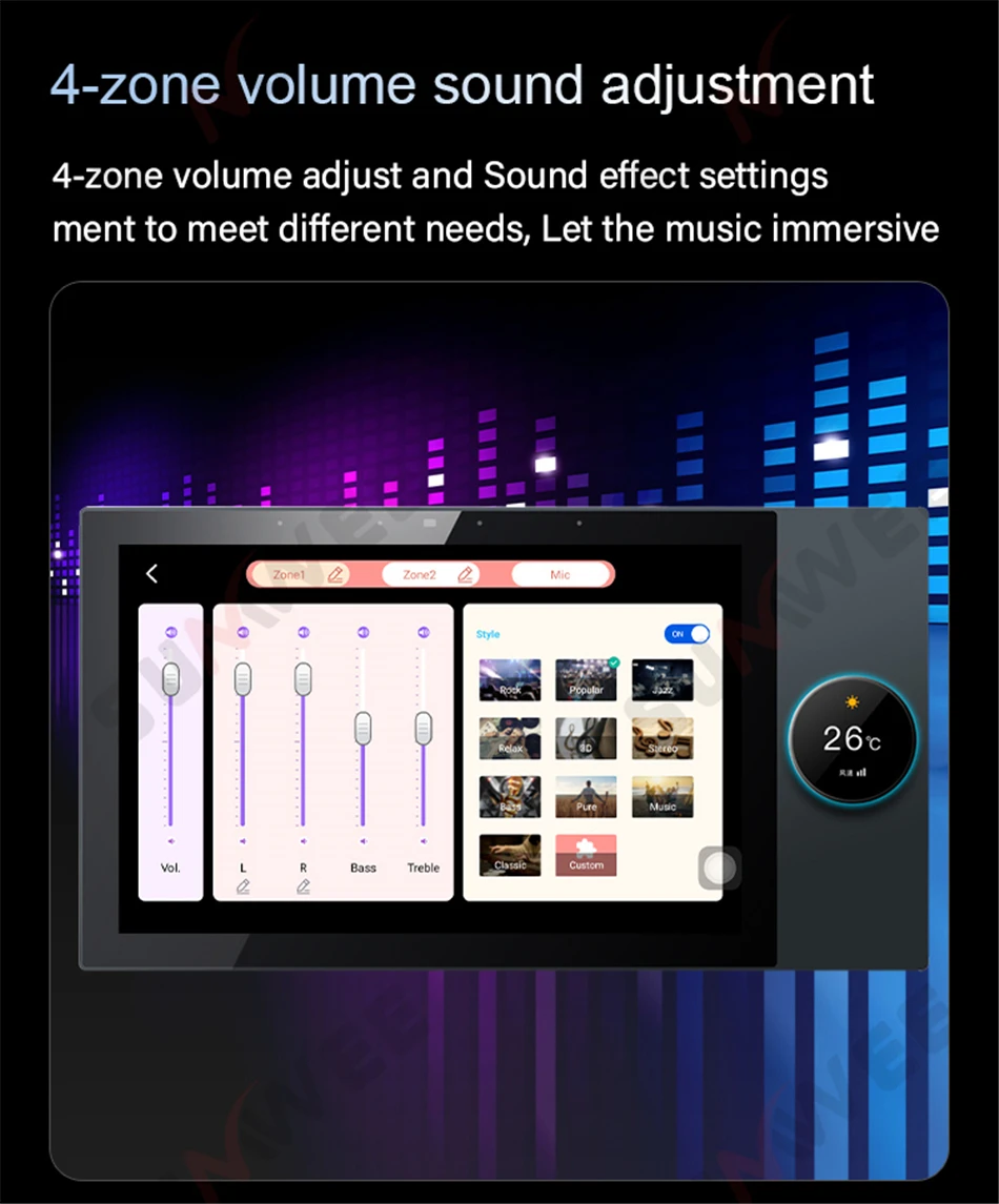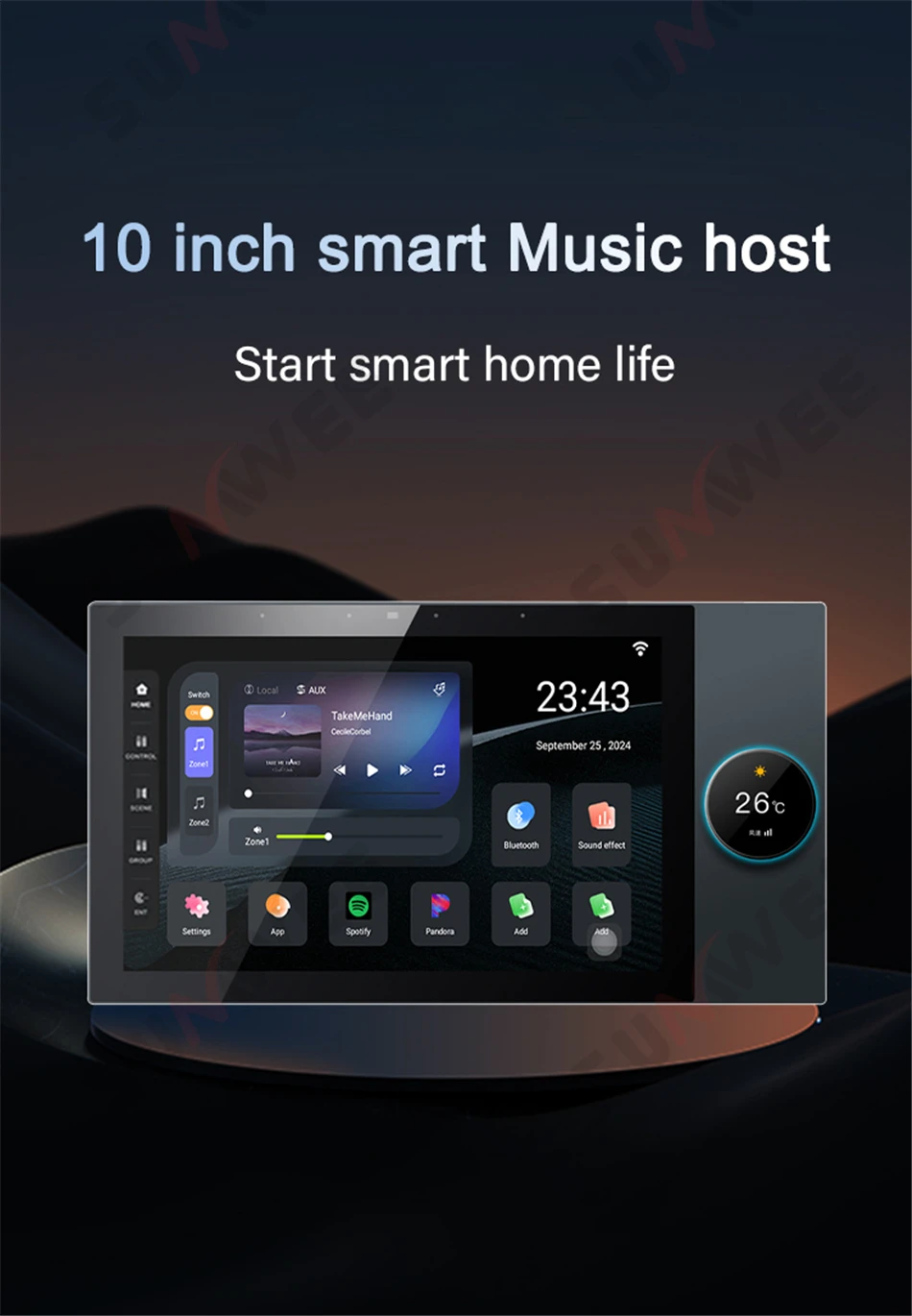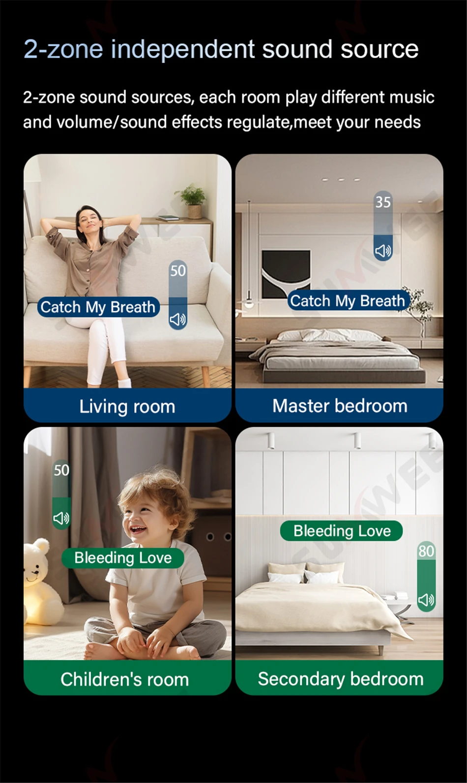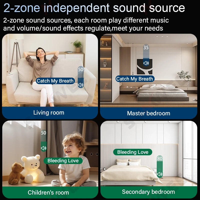 Smart Home 2zone audio in wall Amplifier Android11 system Bluetooth amplificador WIFI built-in ZIGBEE gateway TUYA control panel