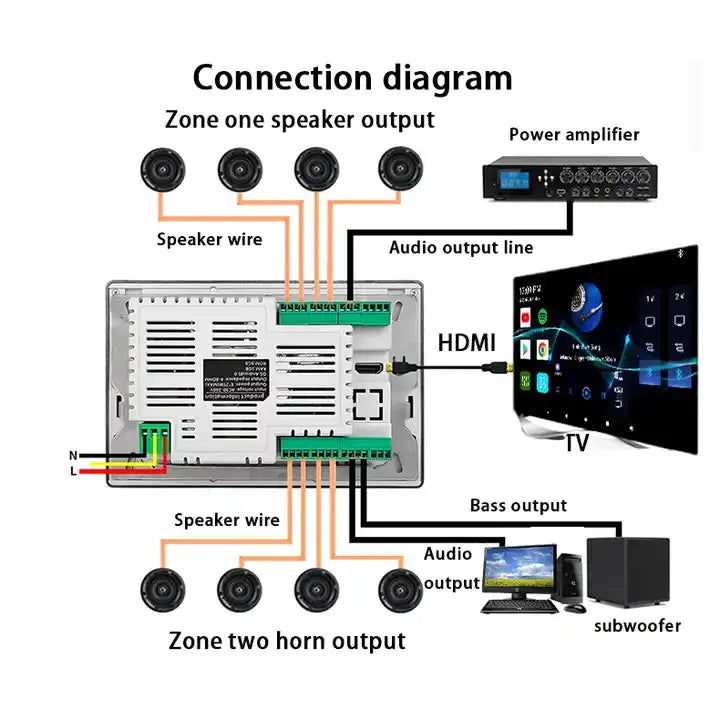 7inch Screen Home Audio Amplifier With HD-MI Cinema Theater Smart Android Wall Amplifier