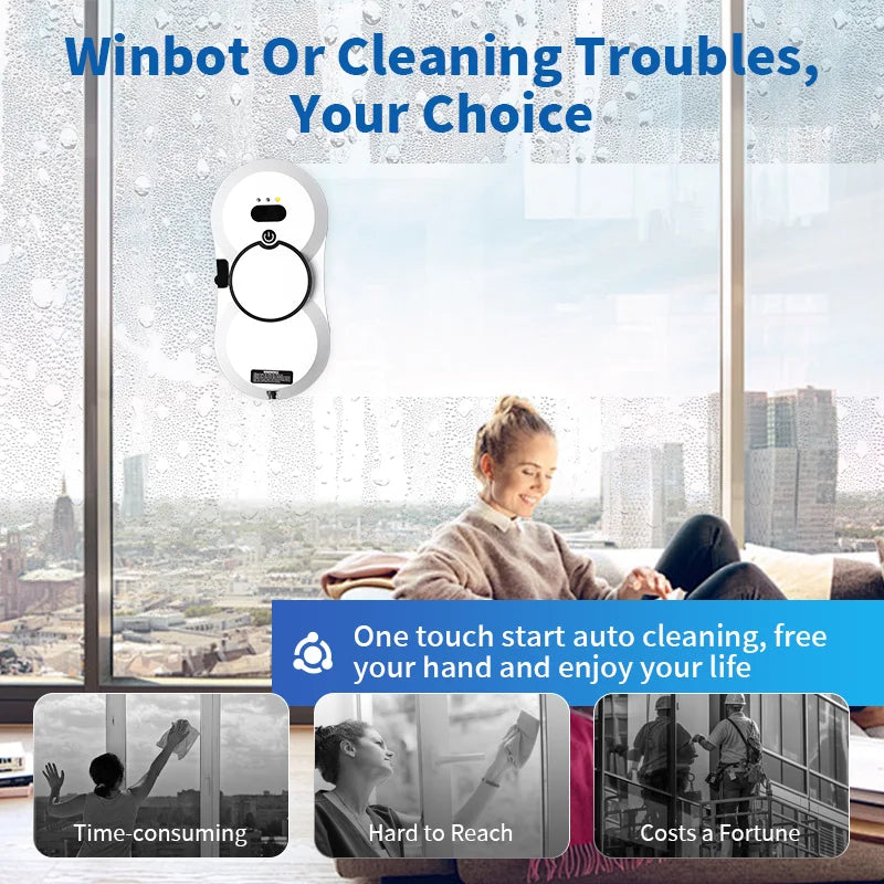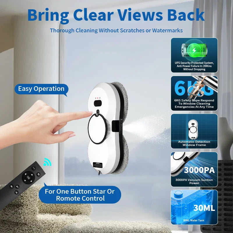 Utilize the Intelligent Window Cleaning Robot to revolutionize your window cleaning routine. This advanced device features powerful dual-turbine and independent drive motors, AI path planning, and dual automatic spray technology, ensuring effortless cleaning that results in streak-free, sparkling windows. Designed for safety and precision, it includes edge detection without frames to prevent falls, multiple safety protections, and high suction power for enhanced reliability. Compact, stylish, and efficient, it is perfect for homes, offices, and high-rise buildings.