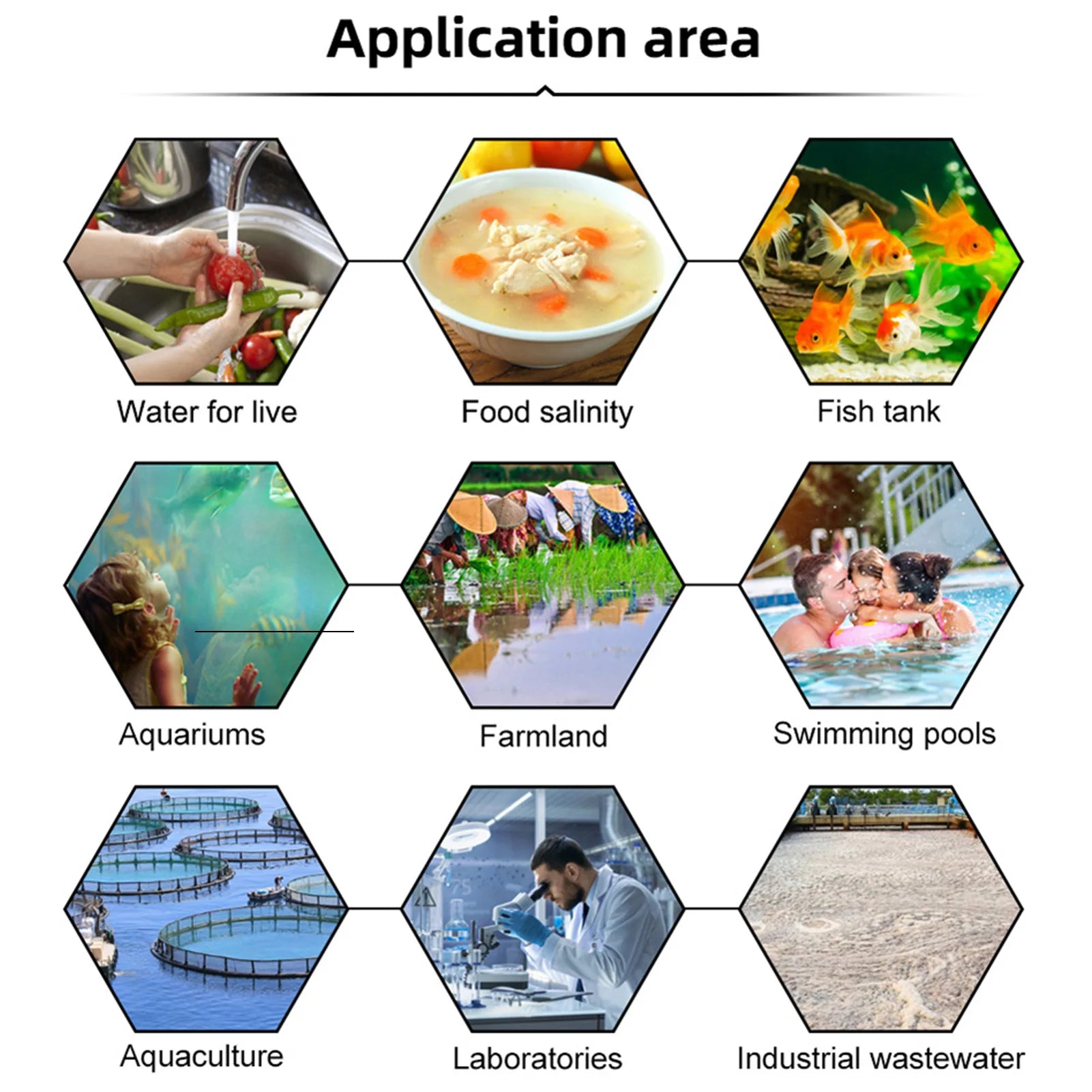 LCD HD Color Display: The color screen is not blinding can easily deal with the dark environment at night, while displaying the water salinity value and temperature data.