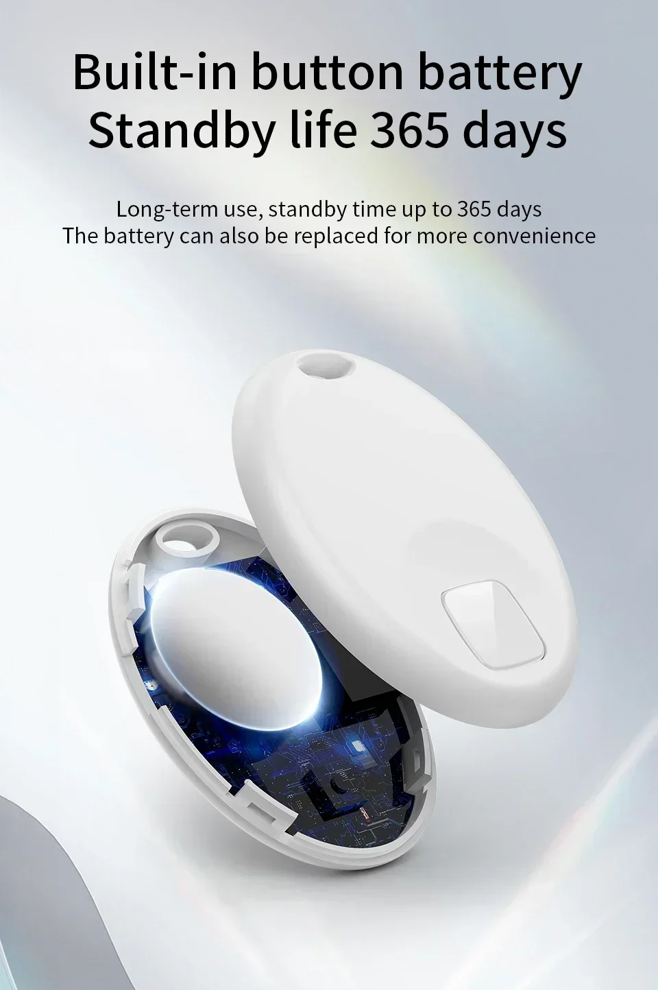Battery: User-replaceable CR2032 coin cell battery.