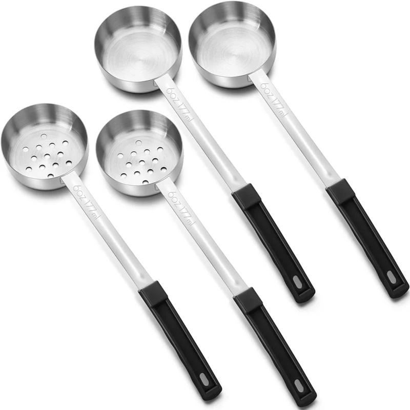 SOFT-4 Pcs Portion Control Serving Spoons Portion Control Spoons Ladle Spoon, Slotted And Unslotted Portion Scoops 6Oz