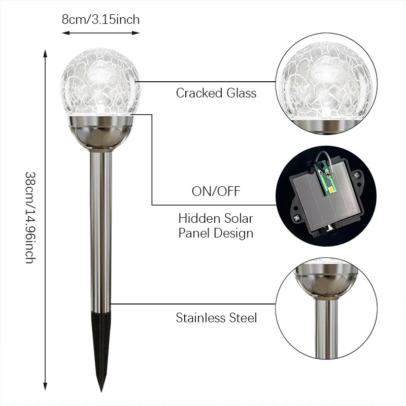 Solar Powered Cracked Glass Garden Lights,with Smart Light Control Path Lights for Garden Lawn Yard Patio