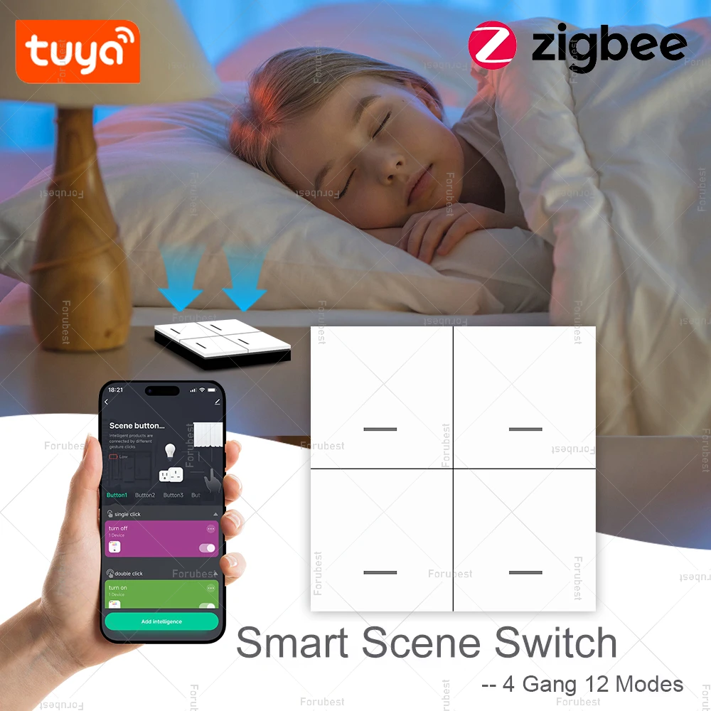 Tuya Zigbee Smart Scene Switch 12 Scenes 4 Gang Wireless Switch Push Button Controller Smart Home Automation Scenario Switch
