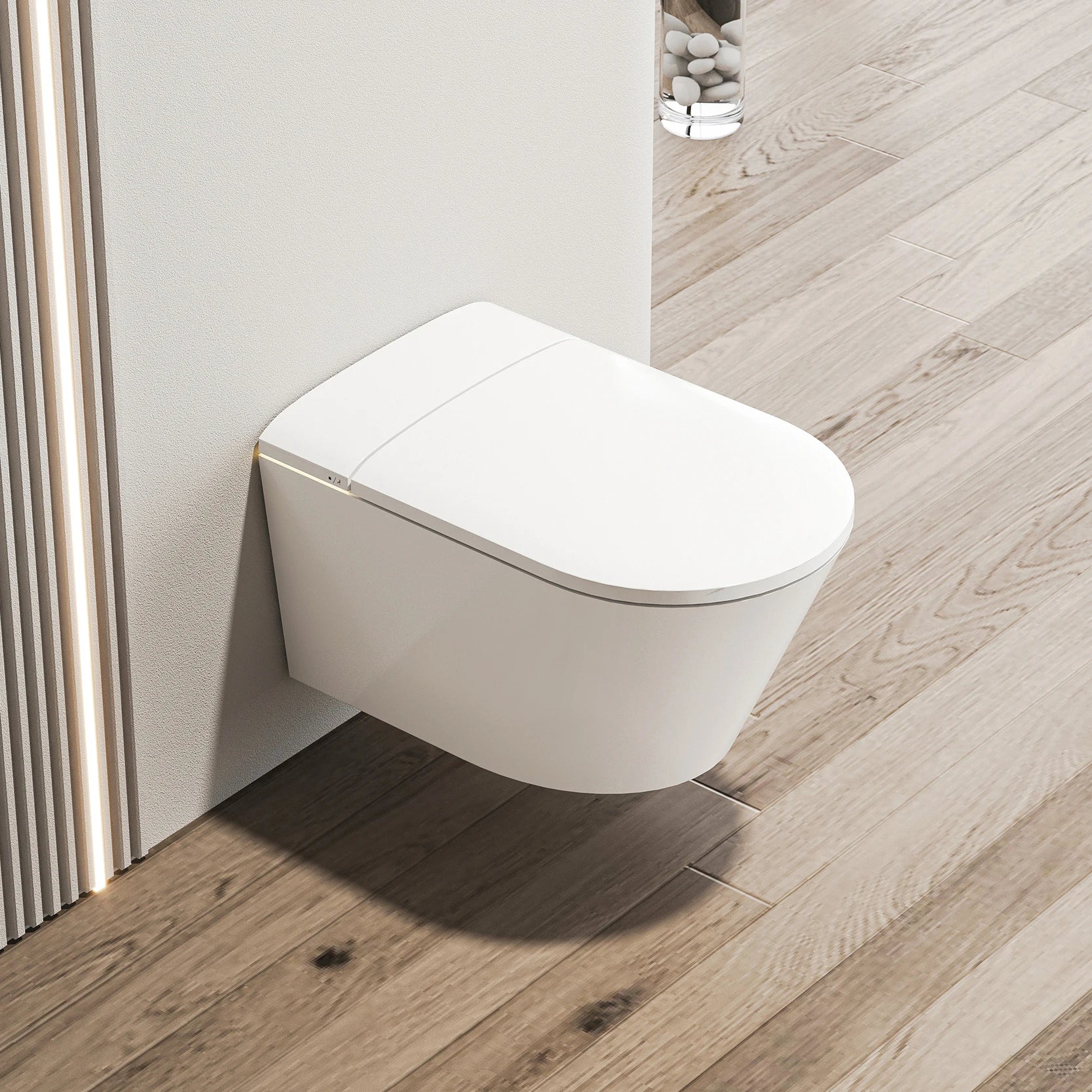 Wall-Mounted Smart Toilet with Sensor Heating Remote Control and Automatic Flush Elongated Bowl Seat on Leaving Seat