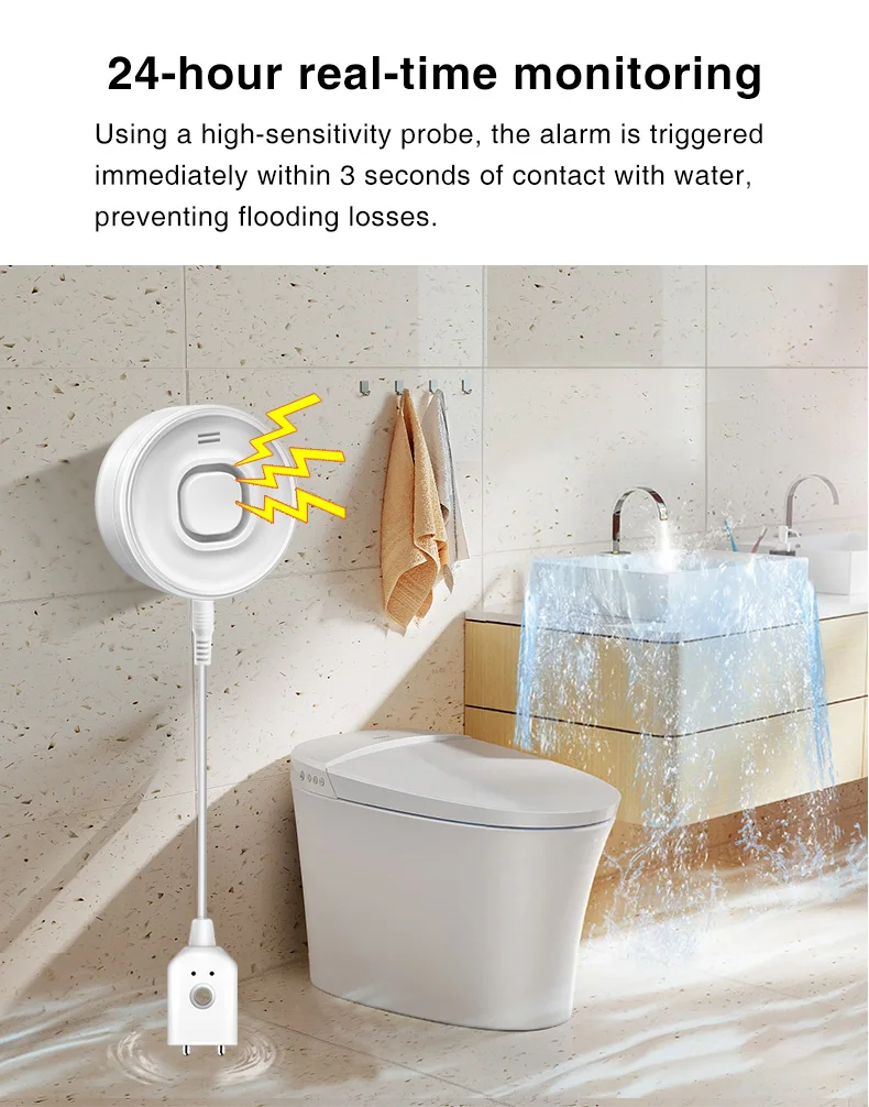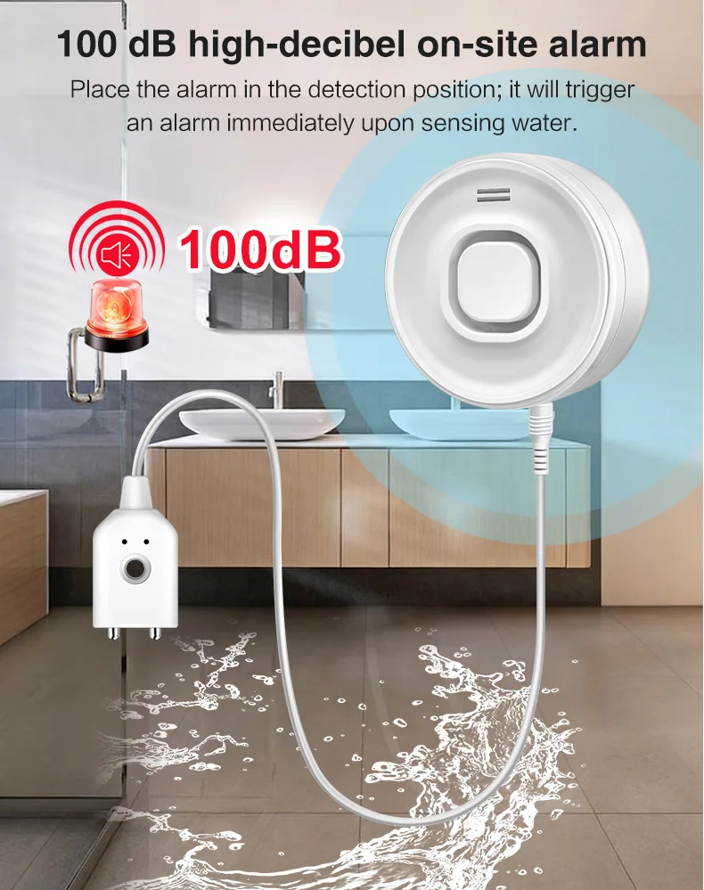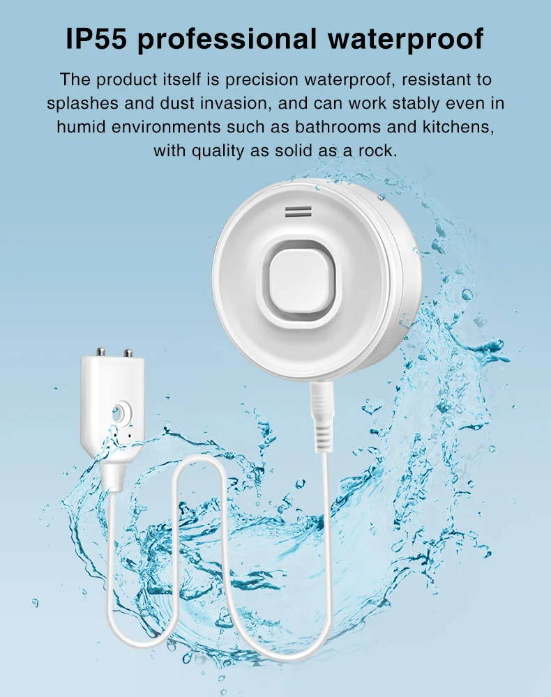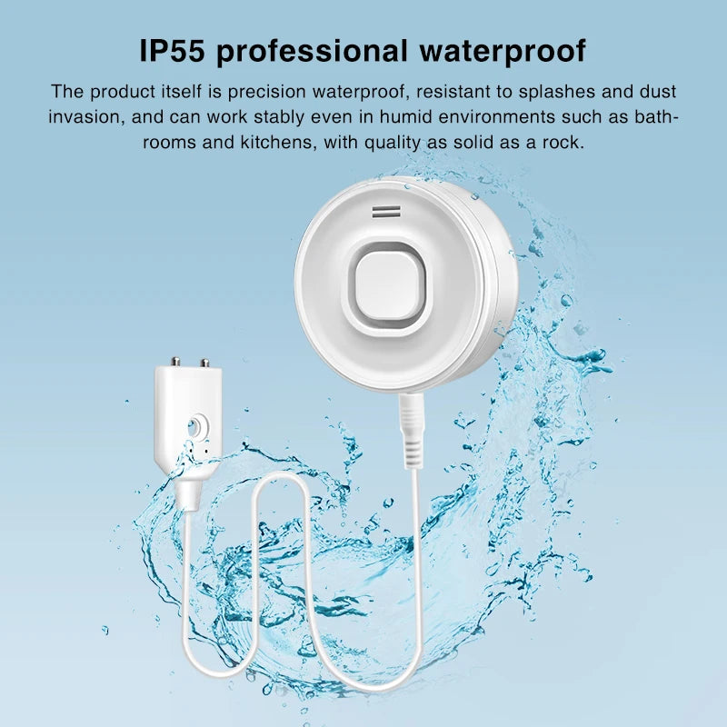 Water Leak Alarm Detector, 100dB Loud Alert Water Sensor, IP55 Waterproof, , Easy Installation for Home Basement Flood NO Smart